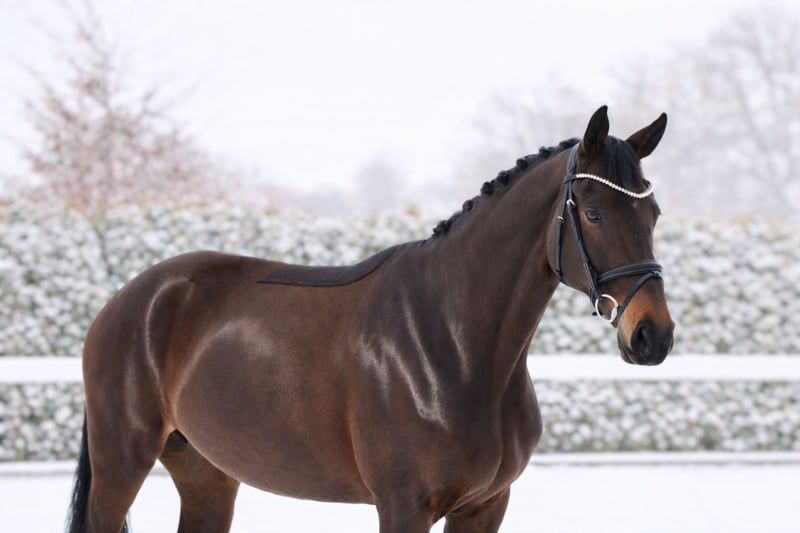 „Goldie“ ist ein Pferd für die Zukunft. Sie hat einen lieben und ruhigen Charakter, ist verträglich in der Herde, dem Menschen gegenüber offen und freundlich und sehr gut erzogen. Dadurch ist sie absolut unkompliziert im Umgang, Schmied, Verladen - alles gar kein Thema. Goldie ist nicht stutig, man merkt keine Rosse o.ä und sie ist nicht stutig oder zu sensibel am Bein! Die Stute kommt direkt vom Züchter zu uns. Goldie ist ansprechend für viele Zielgruppen. Sie ist geeignet für den ambitionierten Dressurreiter der ein Pferd zum Ausbilden und Fördern sucht. Gleichermaßen ist Goldie auch bei einem Amateur super aufgehoben. Durch ihre ruhige und zuverlässige Art geht sie sehr souverän mit dem Reiter und neuen Aufgaben um. Beim Reiten überzeugt Goldie mit ihren herausragenden Grundgangarten und ihrer hohen Reitqualität. Sie geht einfach in Anlehnung, ist sitzbequem und immer lernwillig. Goldie ist fein im Maul und reagiert gut am Sitz, durch diese Eigenschaften lässt sie jeden Reiter gut aussehen. Sie kann Außengalopp, einfache Wechsel, Seitengänge, Travers und springt schon viele sehr gute Wechsel. Goldie war schon mit auf mehreren Lehrgängen und Auswärtstrainings mit dabei und meisterte das hervorragend, alleine verladen und an neuen Orten alleine satteln ist absolut kein Problem mit ihr. Sie kennt die Arbeit an der Longe und auch Stangen und Gymnastikarbeit und ist dabei immer motiviert und sehr routiniert. Wichtige Hinweise: • Stockmaß-Angaben sind geschätzt und nicht exakt nachgemessen • Alle Beschreibungen sind subjektive Einschätzungen des Verkäufers und keine zugesicherten Eigenschaften • Das Organisieren von einem Transport ins neue Zuhause ist kein Problem! Aktuelle Röntgenbilder ohne Befund sind vorhanden, sowie eine einwandfreie klinische Untersuchung. Bei Interesse und weiteren Fragen melden Sie sich gerne jederzeit telefonisch unter 015140555583. Wir sind auch am Wochenende und an Feiertagen erreichbar. Ein Probereiten ist jederzeit möglich.