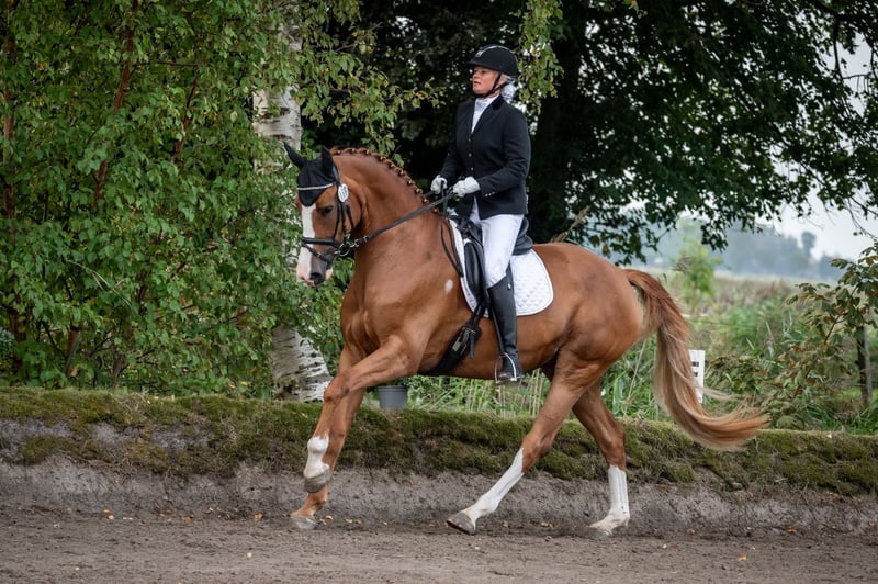 Fille significative de 6 ans du Foundation avec beaucoup d'équilibre et d'éclat. Rona est une jument de grande taille avec un bon fondement. Elle possède trois allures de base impressionnantes, avec une galopade exceptionnelle qui ne laisse rien à désirer. Issu d'une lignée de juments très performantes, elle a hérité d'une excellente montabilité et d'une grande volonté de travailler. Elle est proche des humains et absolument sans problème à manipuler, tout en étant confiante et dotée d'une grande tranquillité intérieure. Rona a participé à quelques compétitions en 2024 sous une cavalière amateur. Elle s'est bien laissée monter et a pu obtenir des classements dans des épreuves de chevaux de dressage, de cavaliers de dressage et de dressage de niveau A. Elle est vendue directement par l'éleveur à des mains ambitieuses et encourageantes. Le pedigree de cette jument réunit un succès exceptionnel tant sportif qu'élevage : sa mère, l'Élite et StPrSt Ritschina Ratschione, a donné naissance à Noche de Ronda (anciennement Ramba Zamba RT), une gagnante internationale en S sous McLain Ward, ainsi qu'à Rocca RT, une finaliste du Bundeschampionat – toutes deux issues d'une descendance primée. La grand-mère Roxy Music, pleine sœur de trois étalons approuvés, est entre autres la mère du très performant Sergeant Pepper I, qui présente plus de 24 victoires en S, une victoire en HLP et une nomination de réserve pour les Jeux Olympiques. Un contrôle vétérinaire par radiographies datant de début 2023 est disponible. Le cheval a été inscrit dans le cadre du service d'élevage par l'Association des Éleveurs de Chevaux Oldenburg, veuillez contacter directement la propriétaire : Anke Richter-Irps 0170-3823194 anke.richter-irps@t-online.de