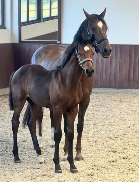 Beautiful and sweet 8-year-old Oldenburg Verband Premium mare by Vito Corleone-Sandro Classic-Rimini, standing at 16.1 hh. With a heavy heart, she is being offered privately to top-quality breeding. She has already foaled two foals, including a gold-premium colt by Belantis II. Further details gladly provided via private message. Strictly to be used as a broodmare.