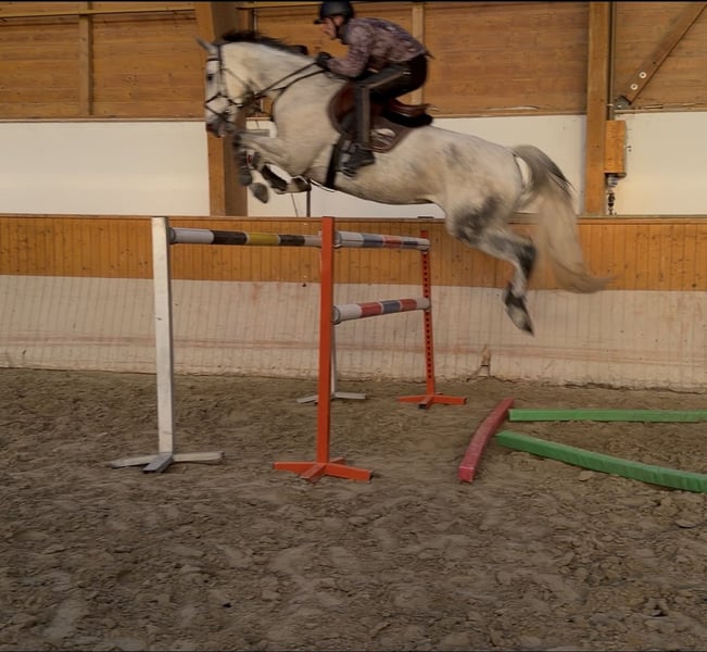 7-year-old mare, 16.1 hh. Very well-behaved both in handling and under saddle. Suitable for an amateur rider as well. Has competition experience up to M level and can jump a 160 cm indoor course at home. TUV approved and has recent X-rays. Please contact me via WhatsApp: +43 664 75427490.