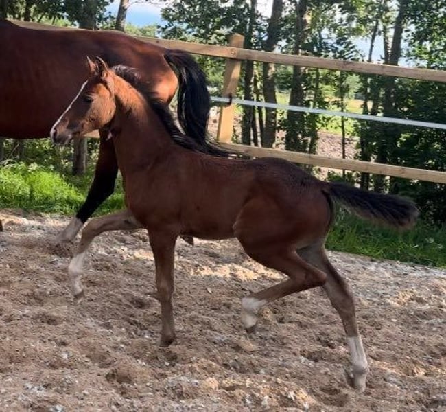 Wunderschöne, super brave und liebe 8 jährige Stute zu verkaufen. Fürst Jazz x Sir Donnerhall I x Espri Aus dem Stutenstamm der Folklore. Mutter ist die Staatsprämienstute Elfenglanz und Oma die Staatsprämienstute Elfe. Elaine (Elfenwald) ist selbst ca. 172cm groß und schön gezeichnet mit 4x weiß. Sie ist im Umgang super brav, lieb und absolut unkompliziert. Sie brachte bereits 2 gesunde und gute Fohlen zur Welt. Eines davon kam (mit dem Hengst Esquin White) weiß geboren auf die Welt. Sie hat immer unproblematisch und sofort aufgenommen. Elaine ist regelmäßig und deutlich sichtbar rossig. Wer eine hübsche und gute Stute zur Zucht sucht ist hier sicher genau richtig. Elaine wird als reine Zuchtstute verkauft. Nur in gute Hände. Alles weitere gerne telefonisch oder per WhatsApp. 01707434505 Platz vor Preis. Preis VB !