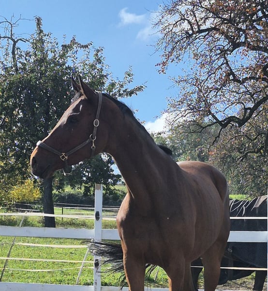 For sale is this charming 9-year-old mare. She is well-behaved in handling but requires a calm rider; with patience, a lot can be achieved with her. She is 9 years old and has only been lunged so far, gradually getting familiar with everything in a patient manner. Due to a condition similar to a chicken gait/shivering (only visible from behind), she is being sold well below market value. More information is available upon request.