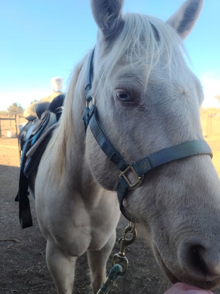 Crash is a diva. He's very social. Loves carrots, hates baths. We had to rehab his feet when I got him 2023, he is still getting 4 shoes. I've never thrown an English saddle on him. Leads very easily. Has been a pasture pet, but was fine when i last threw a saddle on him. I hate to leave him, but plans have changed and he needs a new home.