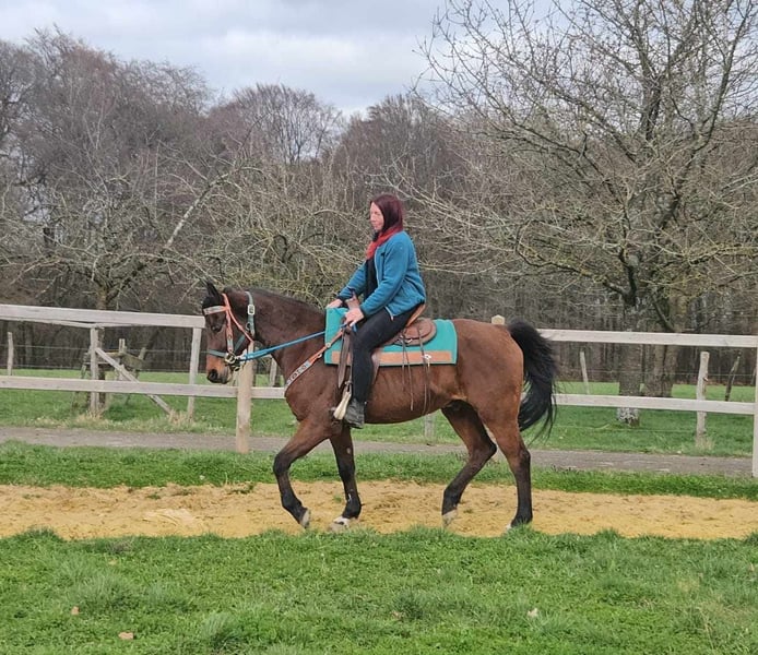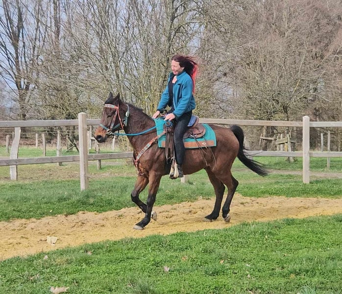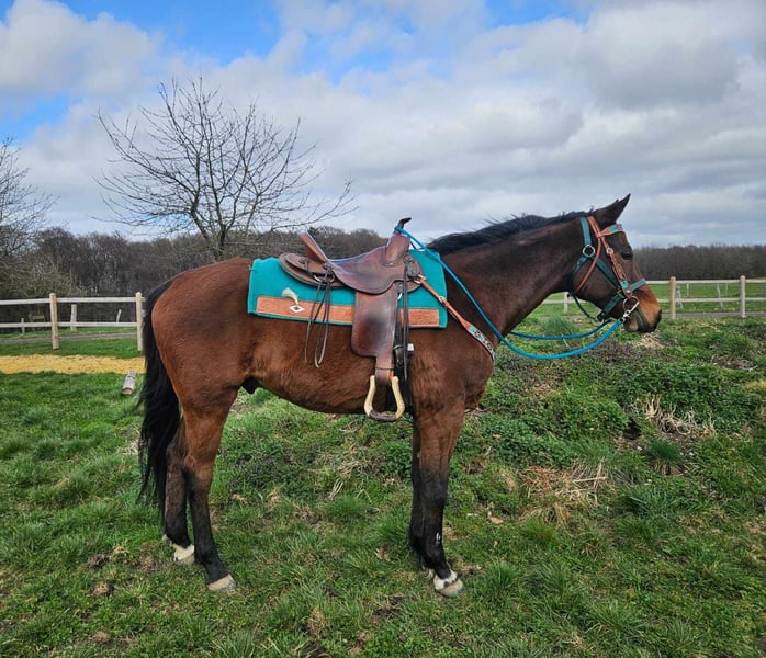 Freizeit- Wallach, vielseitig & angenehm zu reiten Alter: ca. 10 Jahre Stockmaß: ca. 1,55 m Preis : 5300,- AKU dabei ✨ Beschreibung: Lanos ist ein freundlicher Wallach, der sich im täglichen Umgang sehr brav und unkompliziert zeigt. Unter dem Sattel ist er angenehm zu reiten, aufmerksam und kooperativ. Kleine Sprünge meistert er problemlos und auch im Trail bringt er bereits Erfahrung mit. Durch seine Art eignet er sich ebenfalls gut für längere Ausritte oder Wanderreiten. Ein vielseitiger Partner für Reiter, die ein zuverlässiges Pferd für Freizeit, Gelände und abwechslungsreiche Arbeit suchen. Geeignet für: Freizeitreiter, Gelände- und Wanderreiter sowie Reiterinnen und Reiter, die einen braven und vielseitigen Wallach suchen. Unsere Pferde werden regelmäßig: – entwurmt – vom Schmied betreut – osteopathisch kontrolliert Hofladen: Westernsättel, Trensen & Zubehör Transport und Equipment können auf Wunsch mit organisiert werden. Unser Service: ✅ 3 Monate Umtauschrecht ✅ Proberitt: 35 €, jedes weitere Pferd 25 € (bei Kauf am selben Tag angerechnet) Preisnachlass bei sofortiger Mitnahme oder Transport am gleichen Tag: • Preiskategorie 1: 100 € Rabatt • Preiskategorie 2 (ab 5.000 €): 250 € Rabatt ✅ Persönliche & ehrliche Beratung Anfragen bitte ausschließlich telefonisch: 0171 – 4001968 Erreichbar täglich von 8–20 Uhr ⚠️ Keine E-Mail oder WhatsApp ⚠️ Alle Angaben ohne Gewähr