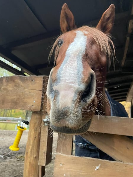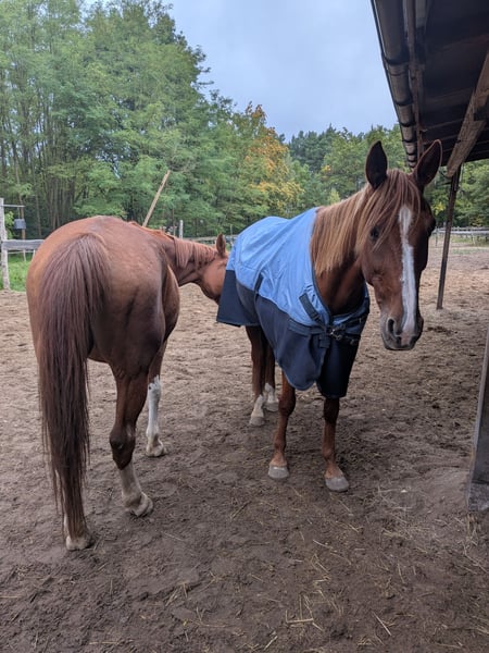 🐴 Szwecki wałach trotter „King Oliver“ – 9 lat – około 160 cm – bardzo spokojny i towarzyski King Oliver to bardzo miły, przytulny wałach o wspaniałym charakterze. Jest czujny, przyjazny i chętnie nawiązuje kontakt z człowiekiem – to po prostu koń, którego chętnie się ma w pobliżu. Obecnie mieszka u nas na padoku w małej, mieszanej grupie i wykazuje się tam pełną socjalnością i łatwością w relacjach z innymi końmi. W terenie jest spokojny i odważny, także podczas jazdy solo. Niestety, nie jest końcem ciężarowym, dlatego szukamy dla niego domu z lekkim jeźdźcem, który ma czas i radość z dalszego rozwoju jego umiejętności. Ma pełną dokumentację i był pod opieką osteopaty. Obecnie ma jeszcze drobne trudności z podkładaniem kopyt, które jednak powinny się poprawić dzięki treningowi i regularnym zabiegom. Ponieważ brakuje nam tutaj doświadczonego, lekkiego jeźdźca, nie mogliśmy jeszcze w pełni rozwinąć jego potencjału. Życzylibyśmy Olliemu kochającego domu, w którym będzie traktowany poważnie, ale nie będzie nadmiernie obciążany.