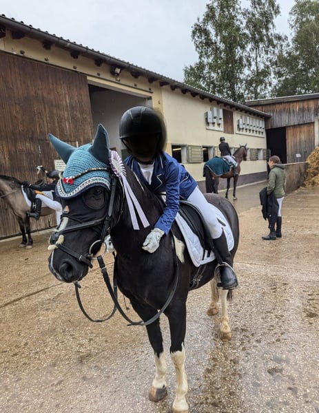 Rocky è un pony che riesce a far sorridere tutti i giorni. Con il suo carattere aperto, affabile e affascinante, conquista chiunque. L'abbiamo acquistato grezzo nel 2018 e abbiamo iniziato a montarlo con molta delicatezza. All'inizio può essere un po' diffidente con i cavali stranieri, ma non appena ha instaurato un rapporto di fiducia con qualcuno, niente ostacola un’amicizia incondizionata. Negli ultimi anni, Rocky si è sviluppato in un affidabile pony per bambini, con molte vittorie in classi di avviamento e competizioni di equitazione. È stato più volte piazzato in dressage di livello E e ha già ottenuto un piazzamento anche in una gara di salto. A casa salta un percorso di livello E e anche ostacoli fissi. Inoltre, ama il lavoro a mano, imparare trucchi, così come lunghe uscite tranquille. A causa della sua asma equina e di un eccessivo palato, per lui è possibile trovare solo una nuova sistemazione in paddock aperto, con paglia a bassa polverosità e fieno vaporizzato, motivo per cui viene ceduto a un prezzo molto inferiore al valore di mercato. Grazie a questa cura, con gestione e inalazioni, Rocky è clinicamente e sintomaticamente quasi inattivo da anni. Desideriamo per Rocky una nuova casa dove possa trovare nuovi amici sia tra i cavalli che tra le persone, che lo amino tanto quanto noi. Verrà ceduto con tutto l’equipaggiamento completo, inclusi due selle Prestige e le relative redini. Priorità alla qualità dell’ambiente rispetto al prezzo.