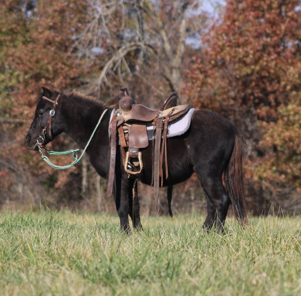 "AVAILABLE ON ONLINE HORSE AUCTION AT www DOT PlatinumEquineAuction DOT com BIDDING OPEN NOW thru SUNDAY | FEBRUARY 15TH! *Final price will be determined on auction site* CONSIGNOR CONTACT INFO: MP Quarter Horses and Family Ponys 618-339-8654 LOCATION: Brownstown, IL Blackjack is a 40 inch, 4 year old mini pony gelding that the whole family can enjoy. He is broke for riders of any age and is gentle, patient, and trustworthy every time you lead him out. This is the kind of pony you can put the kids on without worrying and still enjoy riding yourself. He is safe, sane, and confident, sound in every way with no blemishes. Blackjack has been ridden through the woods, down busy city streets, across cow pastures, and even to school, and he takes it all in stride. Traffic does not bother him, livestock does not bother him, and new places do not bother him. He stays calm, steady, and willing, making him a great choice for beginner riders and families wanting a pony that will take care of their kids. Easy to catch, easy to handle, and easy to be around, he has the right mind and a kind disposition. If you are looking for a dependable, family-safe mini pony that has been there and done that, Blackjack is the one you can trust to do his job every day.