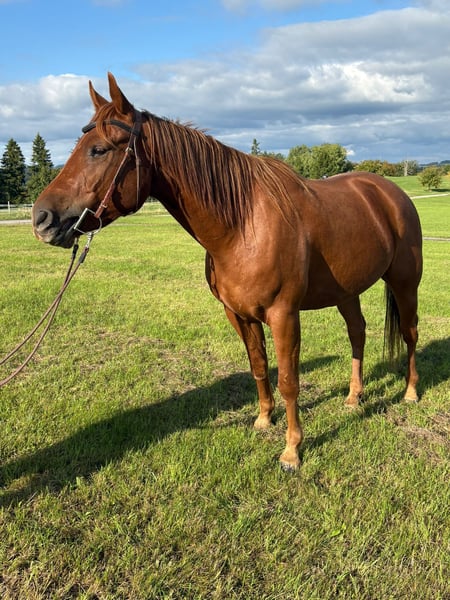 Traumhaftes Freizeitpony im Endmaß – brav, zuverlässig & vielseitig! Dieser bezaubernde Wallach ist ein echtes Herzenspferd! Mit seinen 4½ Jahren und ca. 150 cm Stockmaß steht er voll im Endmaß und begeistert mit einem wunderbaren Charakter: freundlich, ausgeglichen und stets angenehm im Umgang. Für sein Alter ist er bereits gut geritten und überzeugt mit seiner Rittigkeit, Lernfreude und Nervenstärke. Er ist fein an den Hilfen, angenehm zu sitzen und arbeitet motiviert mit ganz gleich, ob auf dem Reitplatz, im Gelände oder in neuer Umgebung. Dabei bleibt er stets ruhig, aufmerksam und verlässlich. Im Gelände geht er sowohl alleine als auch in der Gruppe absolut brav und übernimmt dort souverän die Rolle des Führpferdes. Er ist sowohl an den englischen als auch an den Westernsattel gewöhnt und zeigt sich mit beiden Varianten gleichermaßen brav. Aktuell ist er beschlagen und selbstverständlich unkompliziert beim Hufschmied. Trotz seiner tollen Ausbildung sollte er natürlich weiterhin altersgerecht gefördert werden, um seine positiven Anlagen weiter zu festigen. Mit seiner Lernfreude, seinem ausgeglichenen Wesen und seiner coolen Art bringt er dafür die besten Voraussetzungen mit. Wir können uns diesen Wallach hervorragend als zuverlässiges Familienpony oder als tollen Freizeitpartner für Jugendliche mit Reiterfahrung vorstellen ein treuer Begleiter für viele gemeinsame Jahre im Gelände, beim Reiten oder einfach zum Liebhaben. 👉 Bitte beachten: Für das Vorreiten, Probereiten oder sonstiges Ausprobieren des Pferdes erheben wir eine Gebühr von 30 €, zum Wohl des Pferdes. Bei einem Kauf am selben Tag wird dieser Betrag selbstverständlich mit dem Kaufpreis verrechnet.