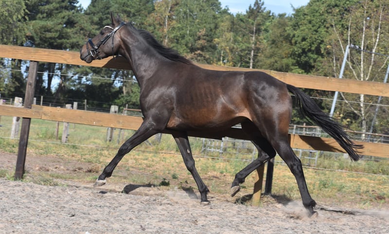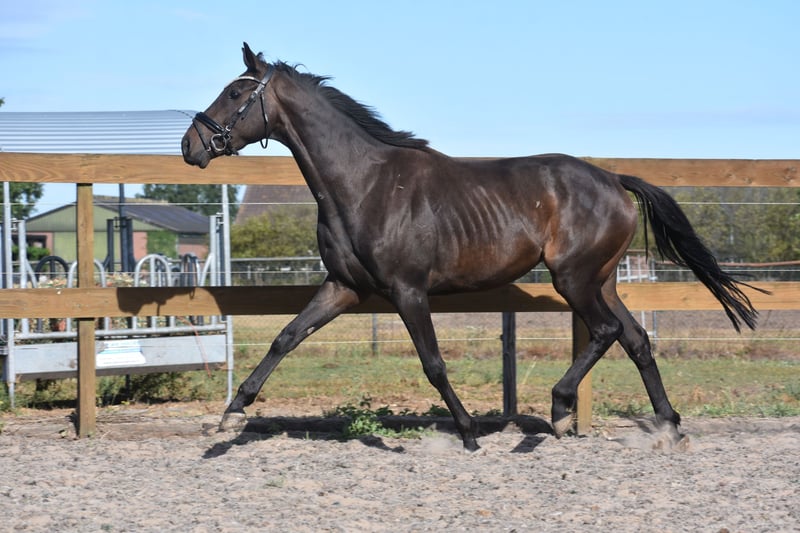 Frey ist ein Thoroughbred Wallach mit einem vollständigen Stammbaum von Austrian School x Miss Glacial. Er hat drei super großzügige Gänge. Da wir zu viele Pferde zu trainieren haben, können wir mit seiner Ausbildung nicht weiter fortfahren. Daher verkaufen wir ihn zu einem niedrigeren Preis. Das Longieren, sowie das Arbeiten mit Sattel und Zaumzeug, funktioniert hier bereits gut. Wir geben daher keine Garantie auf das Reiten mit ihm. Er wurde am 5. April 2021 geboren. Frey ist frei von Stallmängeln. Frey ist ca. 158 cm hoch. Preis von 2.950 € für 1.450 €.
