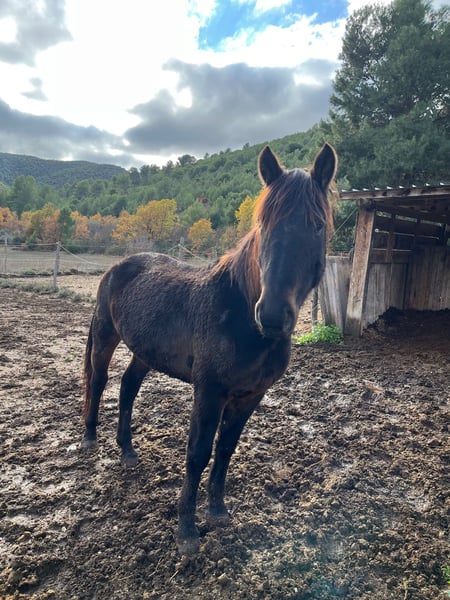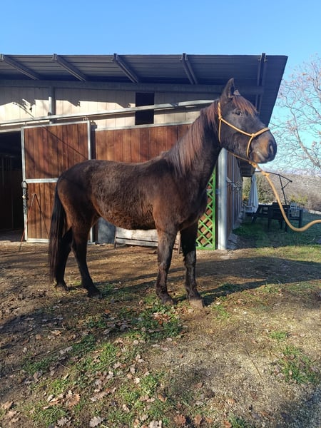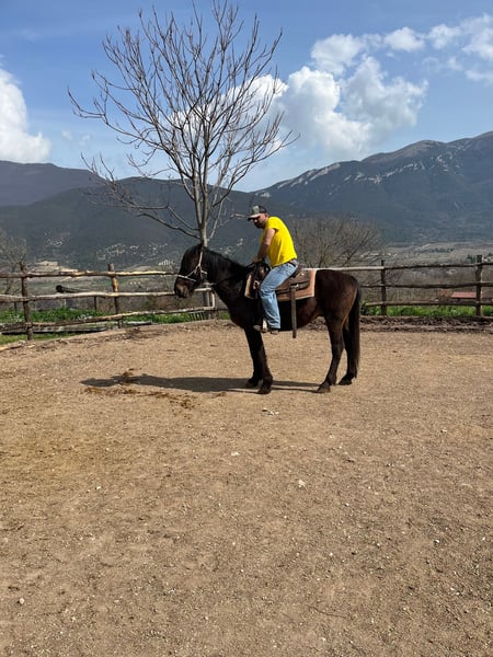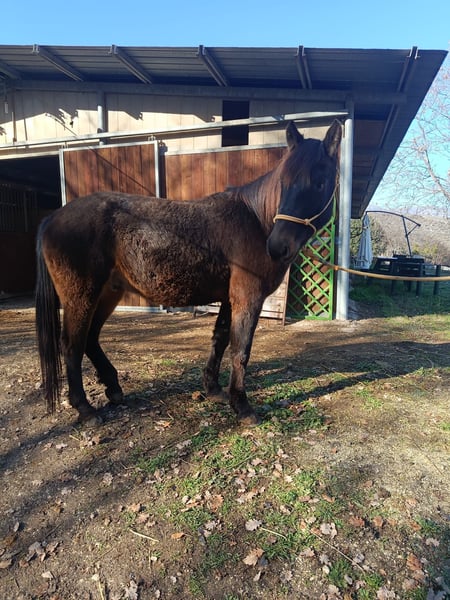 Castrone baio scuro, nato brado in montagna e vissuto li fino ai due anni. Domato poco prima dei tre anni, ha svolto lavoro in maneggio da circa 4 mesi dopo la doma, principalmente uscendo in passeggiata con gli ospiti principianti. Il cavallo è tranquillissimo, docile e sicuro. Cavallo giovane e sano, perfetto per chi vuole divertirsi in campagna o nei trekking, o per chi cerca un cavallo per lavorare in un ranch. Il cavallo ha un piede sicuro e non è pauroso. Adatto a ogni livello di cavaliere, anche principianti. Vendesi per chiusura attività.