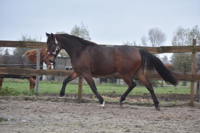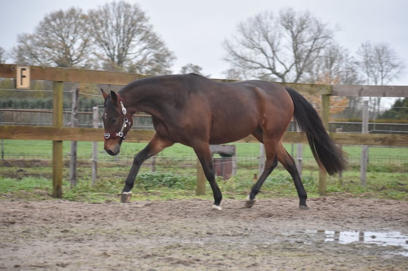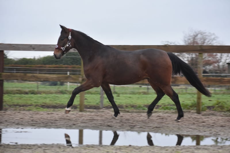 Ontmoet Orville Boko, een ontzettend knappe ruin van 5 jaar oud en ca 156 cm hoog. Een pony paardje wat niet alleen prachtig is om te zien, maar ook een ontzettend fijn karakter heeft. Hij heeft een mooie afstamming van Wishing Stone x Muscles Yankee x Donerail. Hij is uiterst betrouwbaar hier . Zowel in de omgang als op stal, in de kudde, de trailer, de poetsplaats en tijdens het werken: hij is hier fantastisch meewerkend en nuchter! Boko is hier zadelmak binnengekomen. Bij zijn vorige eigenaren heeft hij al een aantal ritjes gelopen en ook hier liet hij zich vanaf het begin nuchter en betrouwbaar zien onder het zadel. Hij pakt het werk fijn op en denkt goed mee met zijn ruiter. Is ook beleerd voor de wagen. Wat Boko extra bijzonder maakt, is zijn sociale en mensgerichte instelling. Hij geniet hier van aandacht en werkt graag voor je. Door zijn leeftijd kun je nog alle kanten met hem op en hem volledig naar eigen hand zetten. Of je nu recreatief wilt rijden of ambitie hebt in de sport. Wij zien in Boko zeker potentie om de sportieve kant op te gaan. Hij is in bezit van 2 keuringsrapporten inclusief bloedafname , waarbij hij volledig is goedgekeurd. Een mooie, talentvolle ruin met een fijne instelling en een toekomst vol mogelijkheden. Een gouden hartje heeft Boko. Boko is een paardje uit duizenden! 4950,- incl. merkzadel