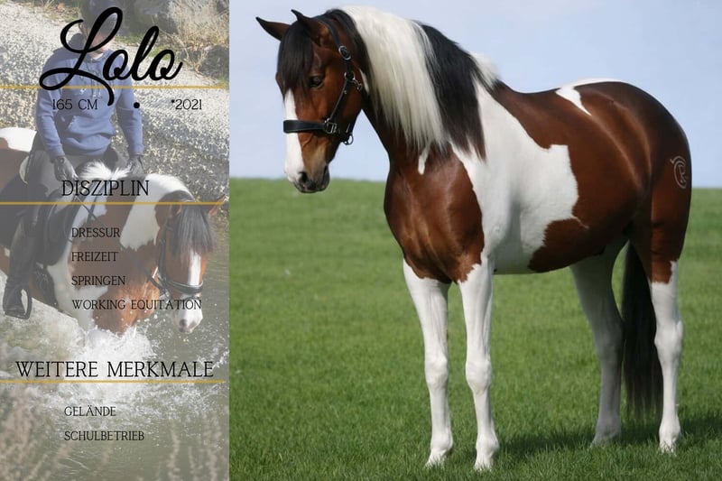 Lolo is a 5-year-old, approximately 16.1 hh, pinto gelding. *Lolo* is a stunning, expressive gelding with an excellent character. He is well-trained and very rideable, making him incredibly easy to handle. He has very good gaits, is light in the contact, and a pleasure to sit. He is completely honest and super, super cool. Lolo has no issues with unfamiliar environments, traffic, noise, and enjoys crossing water. He is uncomplicated both alone and in a group in the terrain. He also enjoys jumping and is happy to hop over a log. He provides a secure feeling even for nervous riders. Lolo is also suitable for teenagers. He is an absolute dream horse. !!! BE SURE TO WATCH HIS VIDEO !!! In handling, he is very people-oriented, affectionate, and uncomplicated. This stunning all-rounder not only looks great but also impresses with a wonderful character. A current video can be found in the listing or at the following link: https://www.youtube.com/watch?v=Qr8ezEHAnC0 Horse Dealership Dederichs – Your Partner for Horse Buying Contact & Availability: Please inquire exclusively by phone at 0173/9792139 Monday – Friday: 09:00 – 18:00 Saturday: 09:00 – 15:00 Sunday: Closed Follow us on social media! Experience our daily work with sale horses on Instagram, TikTok & Facebook at Pferdehandlung Dederichs Discount: Receive 5%–10% off when you take your new dream horse immediately Trial Riding & Demonstration: • Trial ride: €40 per horse (up to 2 riders), fee credited upon purchase • Holidays: Trial ride €50 • Demonstration by our trainers: €30 per horse (pre-riding, ground work, etc.) Pre-Purchase Examination & Transport: • Many of our horses already have a pre-purchase exam (AKU) • You are welcome to bring your own veterinarian • We can arrange an examination for you • We also assist with transportation to your new home Other Sale Horses: We have additional horses available in our stable that are not yet listed online. If your dream horse is not yet among them, do not hesitate to contact us. Important Notes: • Estimated height measurements are approximate and not precisely measured • All descriptions are subjective assessments by the seller and do not constitute guaranteed properties