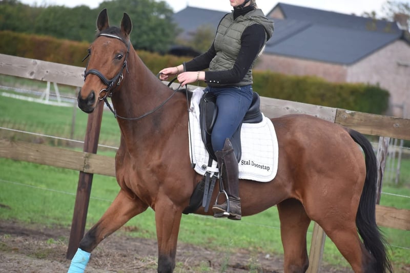 Knappe, vrolijke, 6 jarige ruin Hier is Yamas, een 6 -jarige ruin met de afstamming Anjaal x Creese. Met zijn sprekende bruine ogen en charmante uitstraling weet hij direct harten te veroveren. Hij heeft een mooi familiemaatje met zijn ca 158 m hoogte. Yamas is een paard met een fijn, nuchter karakter. Hij blijft hier rustig in nieuwe situaties en is niet snel onder de indruk van zijn omgeving. Daarbij is hij niet overdreven voorwaarts, wat zorgt voor een veilig en betrouwbaar gevoel in het zadel. Hij is in bezit van een keuringsrapport inclusief bloedafname, waarbij hij is goedgekeurd voor de sport met perfecte buigproeven! In de omgang, het verkeer, de trailer en in de kudde is Yamas hier nuchter en in de wei en op stal erg makkelijk. € 5450,- Incl. zadel en compleet hoofdstel