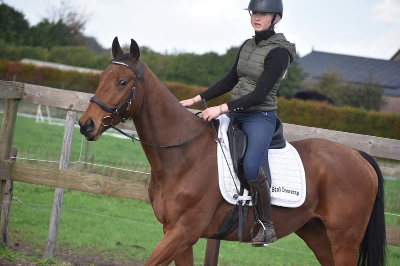 Hier is Yamas, een 5 -jarige ruin met de afstamming Anjaal x Creese. Met zijn sprekende bruine ogen en charmante uitstraling weet hij direct harten te veroveren. Hij heeft een mooi familiemaatje met zijn ca 158 m hoogte. Yamas is een paard met een fijn, nuchter karakter. Hij blijft hier rustig in nieuwe situaties en is niet snel onder de indruk van zijn omgeving. Daarbij is hij niet overdreven voorwaarts, wat zorgt voor een veilig en betrouwbaar gevoel in het zadel. Hij is in bezit van een keuringsrapport inclusief bloedafname, waarbij hij is goedgekeurd voor de sport met perfecte buigproeven! In de omgang, het verkeer, de trailer en in de kudde is Yamas hier nuchter en in de wei en op stal erg makkelijk. € 3950,- Incl. zadel en compleet hoofdstel