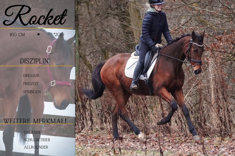Rocket is a 2019-born gelding, approximately 16.0 hh, by Gale Force Ten out of Henry The Navigator. *Rocket* is a stylish and exceptionally sweet all-rounder. He is completely fearless and very laid-back. He rides calmly in the arena and in the terrain, and we can also see him as a good school horse. He has shown himself to be excellent in unfamiliar environments. Always up for fun. Very relaxed in the terrain and happy to jump. !!! BE SURE TO WATCH HIS VIDEO !!! Well-behaved, affectionate, and uncomplicated in handling. A current video can be found here in the listing or at the following link: https://www.youtube.com/watch?v=IXSHk83yGvI Horse dealer Dederichs – Your partner for horse purchasing Contact & Availability: Inquiries please exclusively by phone at 0173/9792139 Monday – Friday: 9:00 a.m. – 6:00 p.m. Saturday: 9:00 a.m. – 3:00 p.m. Sunday: Closed Follow us on social media! Experience our daily work with sale horses on Instagram, TikTok & Facebook under Pferdehandlung Dederichs Discount: Receive a 5%–10% discount when taking your new dream horse immediately Test riding & demonstrations: • Test ride: €30 per horse (up to 2 riders), amount credited upon purchase • Holidays: Test ride €50 • Demonstration by our trainers: €25 per horse (pre-riding, groundwork, etc.) Pre-purchase examination & transport: • Many of our horses already have a pre-purchase exam (AKU) • You are, of course, welcome to bring your own veterinarian • We can arrange an examination for you • We are also happy to assist with transport to your new home Additional sale horses: We have more horses available in our stable that are not yet listed online. If your dream horse is not yet featured, do not hesitate to contact us. Important notes: • Height information is estimated and not precisely measured • All descriptions are subjective assessments by the seller and do not constitute guaranteed properties