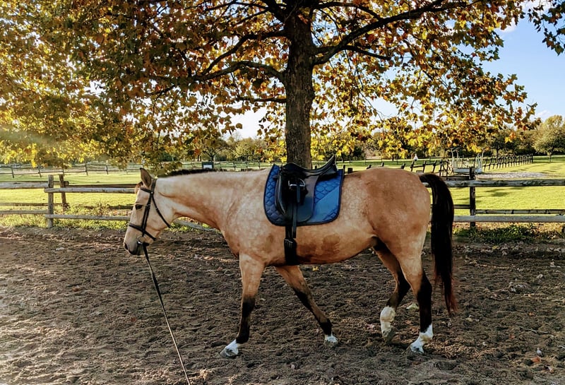 Leider muss ich meinen schönen 7 jähriger Wallach mit guten GGA und besonderer Farbe aus Zeitgründen verkaufen. Er ist ein Polnisches Warmblut und hat ein Stockmaß von 163 cm. Ich habe ihn mit 2,5 Jahren gekauft und langsam angefangen Auszubilden. Seit 2 Jahren wird er dressurmäßig geritten und ans Gelände gewöhnt. Bodenarbeit und Longe kennt er natürlich auch. Maraton benötigt einen sicheren und erfahrenen Reiter der ihn weiter Ausbildet. Erfahrung mit Jungpferden wäre wünschenswert, denn er testet auch mal seine Grenzen im Umgang oder erschrickt sich im Gelände. Auf dem Platz zeigt er sich lernwillig und arbeitet meistens gut mit. Aufgrund einer alten Koppelverletzung am Hinterbein ist er nicht für den großen Sport geeignet. Die Verletzung hat er sich 2022 zugezogen und ist sehr gut verheilt außer einer Narbe ist nichts zurück geblieben. Laut Tierärzten ist er voll reitbar. Aktuell steht er in einer Paddockbox mit täglichem Koppelgang im Sommer und im Winter. Auf der Koppel steht er aktuell mit einem weiteren Wallach, was gut klappt. Er stand auch schon in größeren Gruppen wo er immer eher rangniedrig war. Solltest du ein junges Pferd suchen und die Herausforderung lieben, dann melde dich gerne bei mir.