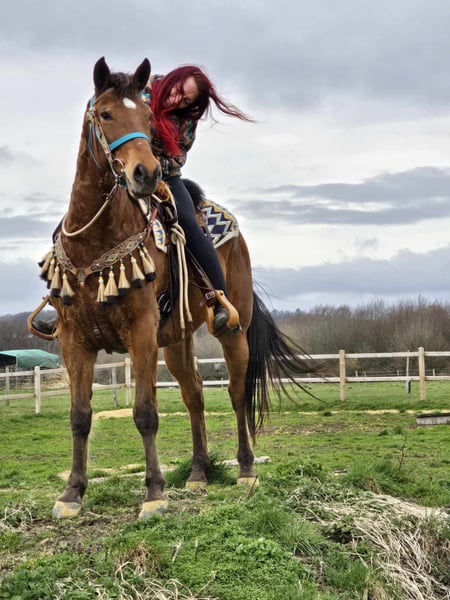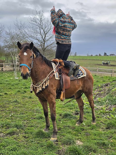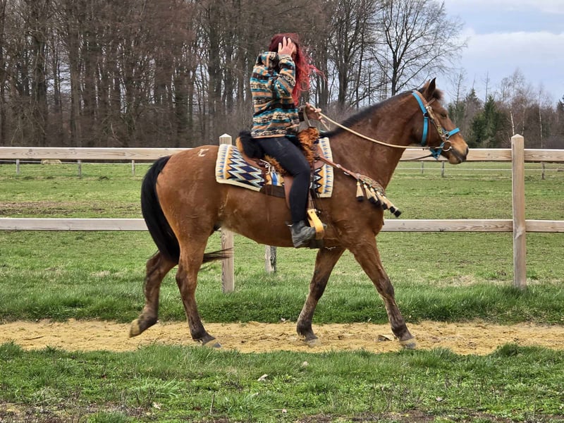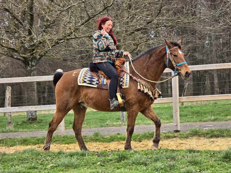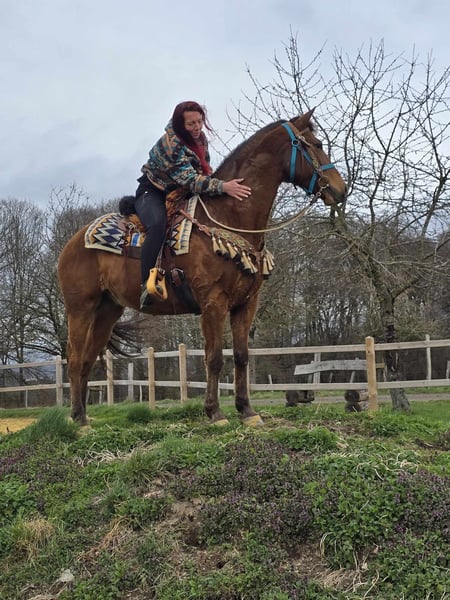 Blue Jeans – braver Wallach, angenehm zu reiten Alter: ca. 8 Jahre Geschlecht: Wallach Stockmaß: ca 1,56 Preis: 6800,- AKU: vorhanden ✨ Beschreibung: Blue Jeans ist ein freundlicher und zuverlässiger Wallach mit angenehmem Charakter. Im täglichen Umgang zeigt er sich brav, ruhig und unkompliziert. Unter dem Sattel ist er angenehm zu reiten, aufmerksam und arbeitet gerne mit seinem Reiter zusammen. Auch auf dem Platz zeigt er sich kooperativ. Ein sympathisches Pferd, das sich ideal für den Freizeitbereich eignet und Reitern viel Freude bereiten kann. Geeignet für: Freizeitreiter oder Reiter, die ein zuverlässiges und unkompliziertes Pferd suchen. Unsere Pferde werden regelmäßig: – entwurmt – vom Schmied betreut – osteopathisch kontrolliert Hofladen: Westernsättel, Trensen & weiteres Zubehör Transport und Equipment können auf Wunsch organisiert werden. Unser Service: ✅ 3 Monate Umtauschrecht ✅ Proberitt: 35 €, jedes weitere Pferd 25 € (bei Kauf am selben Tag angerechnet) Preisnachlass bei sofortiger Mitnahme oder Transport am gleichen Tag: • Preiskategorie 1: 100 € Rabatt • Preiskategorie 2 (ab 5.000 €): 250 € Rabatt ✅ Persönliche & ehrliche Beratung Anfragen bitte ausschließlich telefonisch: 0171 – 4001968 Erreichbar täglich von 8–20 Uhr ⚠️ Keine E-Mail oder WhatsApp ⚠️ Alle Angaben ohne Gewähr