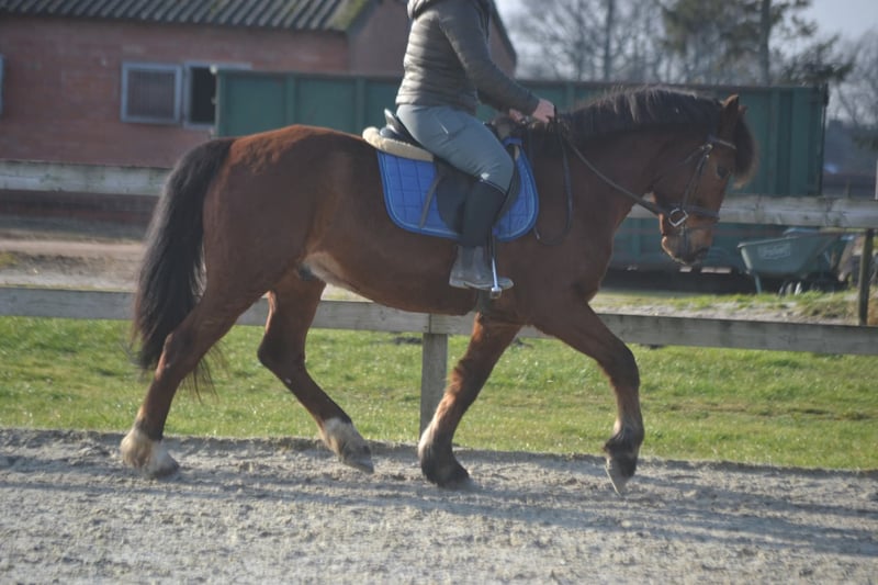 Lustiger 8-jähriger Rüde mit einer Schulterhöhe von 1,51 m. Er ist brav und ruhig im Umgang, steht geduldig beim Putzen und Aufsatteln. Er ist brav zu reiten und wird dressurmäßig ausgebildet. Aufgrund seiner etwas kräftigeren Statur ist er auch für einen kleineren Erwachsenen gut geeignet. Für weitere Informationen oder ein Video einfach WhatsApp schicken an 0031645719488.