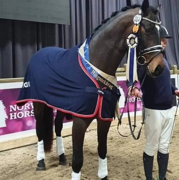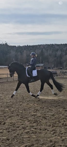 Picture perfect and well behaved licensed stallion. 3 good basic gates, good confirmation. Fürst Romancier x De Noir Always safe to ride with a good work ethic. Nice forward without being hot. Breeds foals with good basic gaits, nice expressions and most important, great mentality! 2 years he gave the best 2 year old in Norwegian Warmblood, he also gave the best 3 year old in Norwegian Warmblood. Easy to breed with excellent sperm-quality. What a Feeling has never been injured or lame, clean x-rays. He is not educated for his age due to lack of time by the owner. He makes a green change, nice working piruettes and a good green piaf. Easy lateral work. Ridden on a snaffle and light in the hand and on the aids.