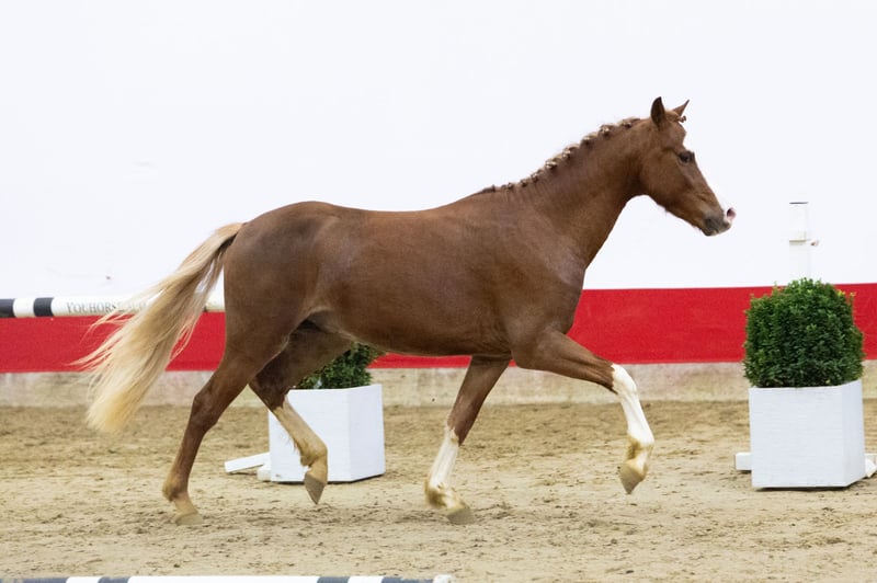 Wat een aparte pony is dit. De tweejarige Schimortera’s Lowie meet 1.35m en blinkt uit qua inzet, beweging en goede manier van springen. Dit kan ook een hunterpony worden. Lowie is een Welsh pony afstammend van de schitterende hengst Maxwing Eye Catcher x Manishof’s Iwan.