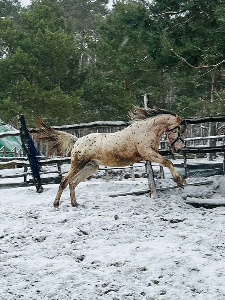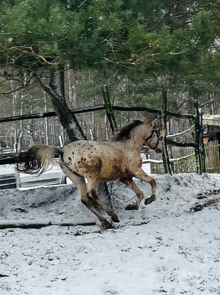 Zum Verkauf steht ein hübscher Hengst mit beeindruckendem Ausdruck! Geboren im Juni 2024, sired von einer silberfarbenen andalusischen Stute und einem polnischen Tarpan-Hengst. Sehr ruhig und gut im Umgang, bereits an Sattel und Longe gewöhnt.