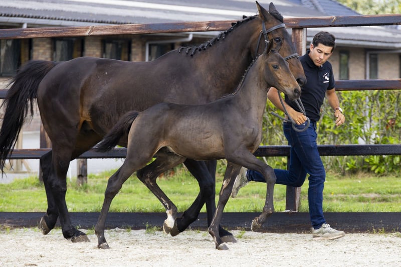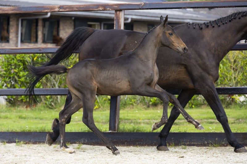 Het donkerbruine hengstveulen All I Ask is langgelijnd, heeft een mooie uitstraling en is snel in zijn reactie. Hij stamt af van de zesjarige, bonte hengst Ohio de Peru (1.20m springen), zoon van de 1.60m Grand Prix-hengst Con-Cor. Moeder Corinna Z (Converter) is een Zangersheide geregistreerde merrie. Zij gaf ook het internationaal 1.30m springpaard Candice V Z met Louna Garo (FRA). Grootmoeder Pemeride d’Epierre is een BWP-merrie van Randel Z (Ramiro Z). Let op: dit veulen loopt nog bij de moeder. Een veulen kan pas gespeend worden vanaf een leeftijd van minimaal 4,5 maand. In overleg met de verkoper kan een later speenmoment afgesproken worden. Vanaf het moment van spenen moet het veulen binnen 14 dagen opgehaald worden, tenzij anders overeengekomen. Indien gewenst kunnen wij de verdere opfok verzorgen, de kosten hiervan zijn dan voor rekening van de koper.
