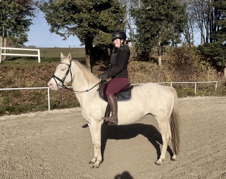 Creamy (Moonlight‘s Cream Pearl) ist eine 2015 geborene Cremello Stute. Sie stammt mütterlicherseits von einem europ. Westernpferd und väterlicherseits von ein Quarter Horse ab. Entsprechend unkompliziert ist die 150 cm große Creamy unter dem Sattel. Sie kennt die englische und die Westernreitweise und liebe Ausritte im Gelände. Früher war die Stute sogar als Schul- und Therapiepferd eingesetzt. Weitere Infos und Videos gerne per WhatsApp oder telefonisch unter: 00436603632373 Standort: Pelmberg 15/ OÖ Besichtigung und Probereiten gerne nach Terminvereinbarung! Der Transport des Pferdes kann gerne übernommen werden