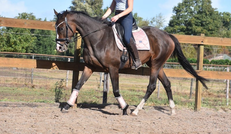 Eyecatcher: äußerst brave 9-jährige Reitpferdestute Paddy ist eine 9-jährige Dame von ca. 1,62 m Höhe, mit einer Abstammung von Leading Light x Caoba von Hernando (FR). Sie besitzt eine elegante, aber dennoch solide Konstitution mit schönen langen Beinen und lässt sich hier angenehm reiten. Aufgrund von Umständen konnten wir sie längere Zeit nicht reiten, doch wir konnten sofort wieder problemlos auf ihr aufsteigen – sie ist hier äußerst brav. Zudem hat sie ein weiches Maul und reagiert fein auf die Hilfen. Eine harte Hand ist bei ihr absolut nicht notwendig, sie ist jedoch auch nicht zu sensibel oder schreckhaft. Paddy ist hier verkehrssicher, gesund und frei von Mängeln. Für die Zucht ist sie ebenfalls sehr interessant! Außerdem ist sie in der Herde äußerst sozial, im Umgang und auf dem Paddock sehr freundlich. Sie wurde kürzlich vom Tierarzt behandelt und verfügt über einen aktuellen Befundbericht. Preis: 6.450 € inklusive Markenreitsattel und Abschwitzdecke.