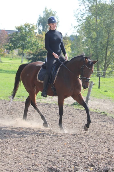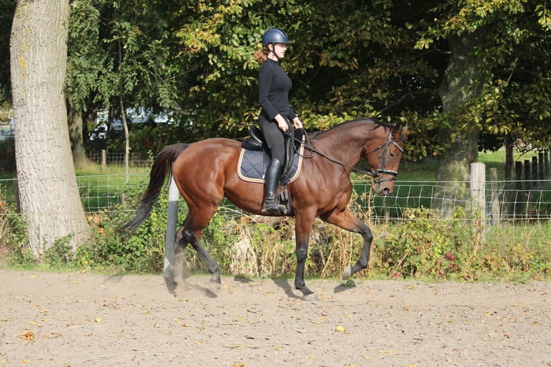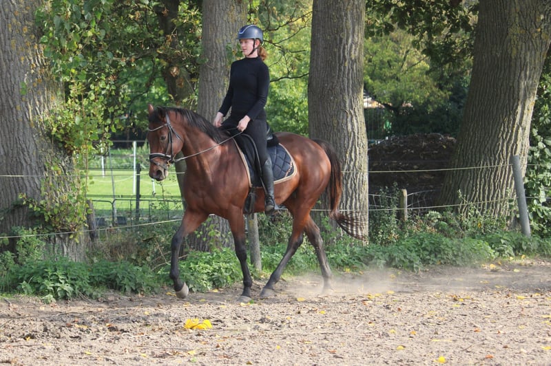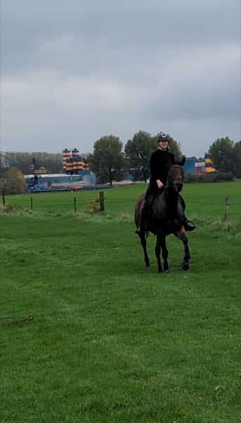 Our sweet Dark is looking for a new home. Dark is a 9-year-old mare, standing 1.64 m, with a very gentle character. She is well-behaved under saddle, does not spook easily, and has a good walk. However, she is somewhat sensitive, especially in the mouth and on the aids. Dark is seeking a home where she can enjoy plenty of turnout. She is well traffic-proof and is comfortable going out alone. She is suitable for dressage and enjoys groundwork, but she does not like jumping, as it makes her very excitable and stressed. She does enjoy pole work. Dark also prefers being outside. She is calm and relaxed in the stable. We keep her inside at night and turn her out to pasture during the day. We are looking for a home where she can spend lots of time outside. Dark has had a few foals through a lease program and has come back to us to resume riding and find a new home. I do not consider Dark suitable for a beginner rider or very young riders. A confident teenager could handle her. The rider should be able to manage walking, trotting, and cantering in balance. On June 10, 2025, Dark was X-rayed without any remarks. She has a passport and pedigree from Dandy Man x Zafonic. All re-registrations are permitted, K.K. WIJK EN AALBURG For more information, please send a private message or contact via WhatsApp at 0654945147.
