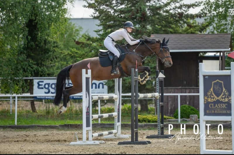 Te koop: een prachtige Wielkopolska merrie, geboren in 2016. Bruin van kleur, met een hoogte van 167 cm. Uitstekend geschikt voor springen, goed uitgebalanceerd in dressuur. Ze beheerst zijgangen, aanleuning, verzameling, verlenging, vliegende wissels en andere piaffe- en passage-achtige bewegingen. Ideaal voor ruiters die een paard zoeken om te introduceren in de dressuur tot 120 cm, met potentieel voor veel meer. Momenteel gereden door een jonge amateurruiter, die haar heeft voorbereid van de overstap van een pony naar wedstrijden in de klasse N. Ze is bekend met springparcoursen op CSI-niveau. Tijdens haar laatste CSI-Am-wedstrijd behaalde ze de eerste plaats. Als jonge merrie won ze medailles in vrijspringen en behaalde ze overwinningen in vaardigheidstests voor merries. Neem contact met ons op voor een bezichtiging en een proefrit!