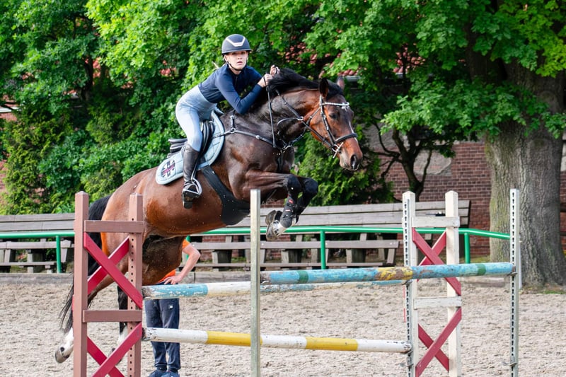 Zum Verkauf steht eine wunderschöne Wielkopolska-Stute, geboren im Jahr 2016. Sie ist dunkelbraun, ca. 1,67 m groß und hervorragend für Springen geeignet, gut ausgebildet im Reiten. Sie beherrscht Seitengänge, Anlehnung und weitere Lektionen. Ideal für Reiter, die ein Einsteigerpferd bis 120 cm in der Klasse führen möchten, mit Potenzial für mehr. Derzeit wird sie von einer Amateur-Jugendlichen geritten, die sie vom Pony auf den Turniersport der Klasse N umgestellt hat. Sie ist mit Parcours bis CSI-Niveau vertraut. Als junge Stute hat sie Medaillen im Freispringen sowie in der Mutprobe gewonnen. Wir laden Sie herzlich ein, die Stute zu besichtigen und eine Proberunde zu reiten!