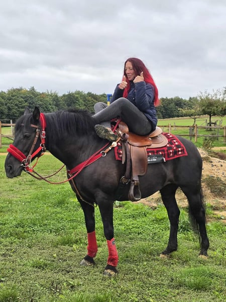 Beautiful, affectionate leisure - trail riding horse for sale! Born: 2014 Height: approx. 1.53 m Price: €6,800 NORA is a charming, well-built mare with a gentle nature and a balanced temperament. She impresses with her calm demeanor and an open, people-oriented character – ideal for anyone looking for a reliable leisure horse with a steady mind. Whether in the field, in the arena, or in daily handling: NORA always presents herself as friendly & cool. Her calmness and sure-footedness make her also ideal for trail riding. ✅ What NORA offers: Microchip and E-pass - veterinary check • Suitable for therapy • Very calm, fearless, and clear-headed • Well-behaved in daily handling (grooming, leading, saddling, etc.) • Good conformation • Current purchase examination available! • Great for leisure, family – and for trail riding – has all the prerequisites to be a loyal leisure partner Our horses – lovingly cared for: • Regularly dewormed • Checked and maintained by the farrier • Osteopathically checked if needed In our farm shop: used western saddles, bridles, halters, and much more. We are happy to organize accessories & transport for you at a reasonable price! Our service for you: So you can decide with a good feeling: • 3 months exchange right (contractually stipulated) • Trial ride possible: → €35 for the first horse, €25 for each additional one – credited if purchased on the same day • Spend time with the horse, riding, walking, or being ridden • €100 discount for immediate pickup or transport on the same day • Personal accompaniment & honest advice during the trial ride Interested? Then we look forward to your call: