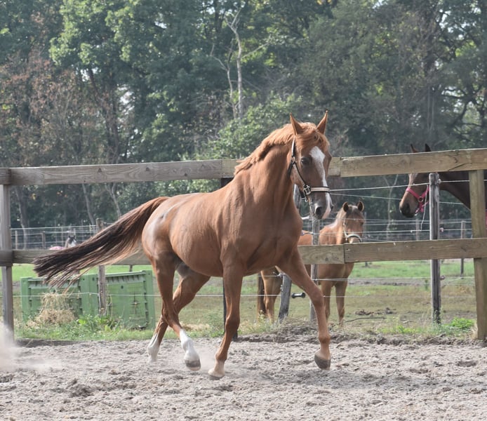 Sissi is een pracht van een paardje! Lekker vol en ze glanst je tegemoet. Ze is hier en voorheen superbraaf gereden. Het is een E merrie van ca 153 m , toont groter door haar body. Sissi is ouder, geboren 31-05-2006, maar kerngezond en vrij van stalgebreken. Ze is onlangs gekeurd inclusief bloedafname , en geschikt bevonden voor de recreatie. Ze heeft een volle stamboom van Fortuna C Chenu x Pershing. Sissi is hier te verzorgen en te berijden door beginnende ruiters. Prijs 2750,- incl. goed merkzadel en dekje.