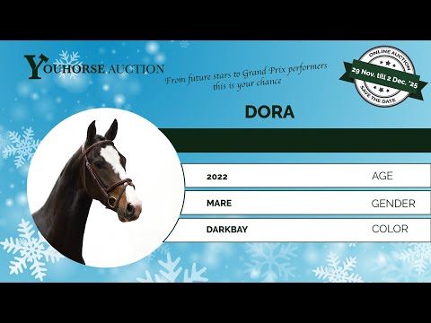 De driejarige Dora is een heerlijke pony met een stokmaat van 1.50m. Dora heeft een opvallend mooie kleur en een aansprekend, chique model. Ze is inmiddels zes maanden zadelmak en toont zich daarbij uiterst braaf. Ze wordt zelfs al gereden door een kind van negen jaar. Dat zegt wat over haar brave karakter en goede instelling. Dora heeft veel rek op de sprong en wil altijd voor je aar de overkant. Een pony met een grote galop en automatische wissels. Hiermee heeft ze alle ingrediënten voor een super sportcarriere. Ze is ook al eens in het bos geweest, wat ze leuk vond. Ze was super braaf. Haar vader Karlos is een NRPS goedgekeurde ponyhengst.