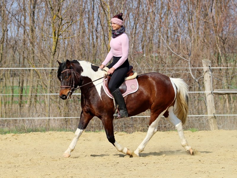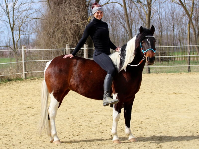 Cute and lovely young mare searching for her new home. She is easy and nice to ride, handle, everything is really simple with her. Absolutely uncomplicated young horse, suitable also for beginners. Her whole family - broodmares, stallion and sisters/brothers - are really kind horses. She grow up by us, was easy to ride in, always thinking about it what she can do for her rider. You can ride her after some days break also without longeing to let her to calm down. She is sleeps in box, during the day is she on a paddock with her sister, no one of them are dominant type. In the future she can be a perfect pleasure horse, but we can imagine her as a western champion, or a jumper for small jumps, and you can make a light dressage horse from her.
