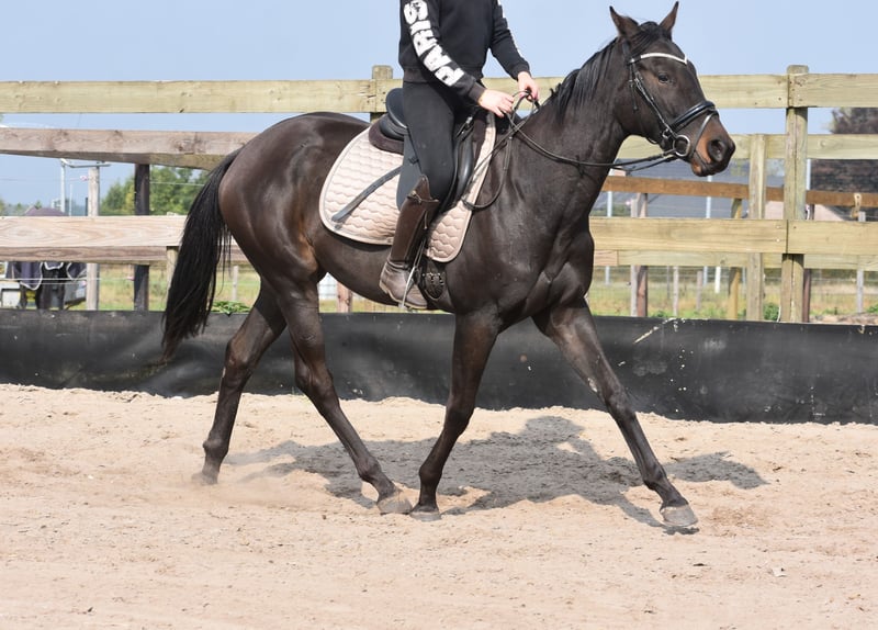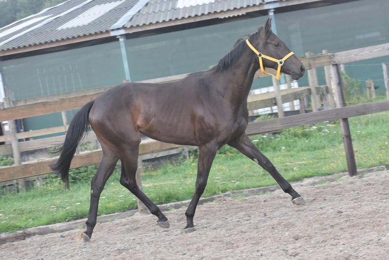 Lernen Sie Arya kennen, eine wunderschöne junge Stute mit Abstammung von Vocalised x Laughing Matter. Diese charmante Dame erobert mit ihrer Ausstrahlung und ihrem Charakter sofort Ihr Herz. Dank ihrer vollständigen Blutlinie und ihres angenehmen Wesens ist sie auch für die Zucht interessant. Sie ist ca. 1,60 m groß. Arya ist hier äußerst brav und gelassen. Da sie noch jung ist, sollte man sie behutsam aufbauen und ihr ausreichend Ruhe gönnen, doch man kann sofort auf ihr reiten. Sie setzt hier niemals einen Fuß falsch! Sie ist neugierig von Natur aus und kommt im Paddock immer mal vorbei, um zu schauen. Ein echtes menschenbezogenes Pferd! Auch in der Herde ist sie sehr sozial. Eine zuverlässige, arbeitswillige Stute mit einem goldenen Charakter und Zukunftsperspektiven – perfekt als dein bester Begleiter. Sie ist kein Bewegungswunder. 3450,-