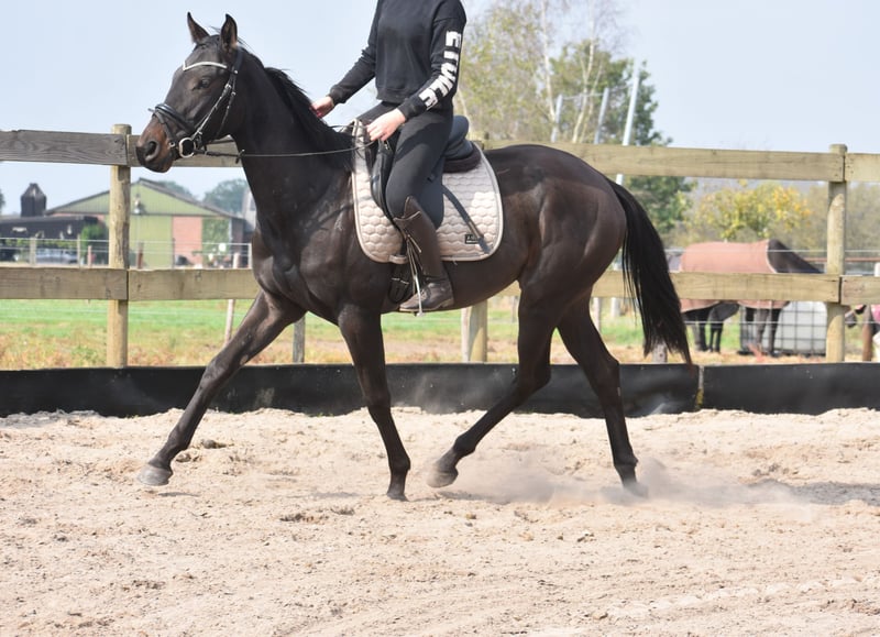 Maak kennis met Arya, een prachtige jonge merrie met een afstamming van Vocalised x Laughing Matter. Deze charmante dame weet met haar uitstraling en karakter direct een plekje in je hart te veroveren. Door haar volle stamboom en fijne karakter is ze ook interessant voor de fokkerij. Ze is ca 160 m hoog. Arya is hier ontzettend braaf en nuchter. Omdat ze jong is moet je wel rustig met haar opbouwen met voldoende rust, maar je kunt zo op haar gaan stappen. Ze zet hier nooit 1 pas verkeerd ! Ze is nieuwsgierig van aard en komt in de wei altijd even bij je kijken. Een echt mensen gericht paard! Ook zeer sociaal in de kudde. Een betrouwbare, werkwillige merrie met een gouden karakter én toekomstperspectief als je beste maatje. Ze is geen bewegingswonder. 3450,-