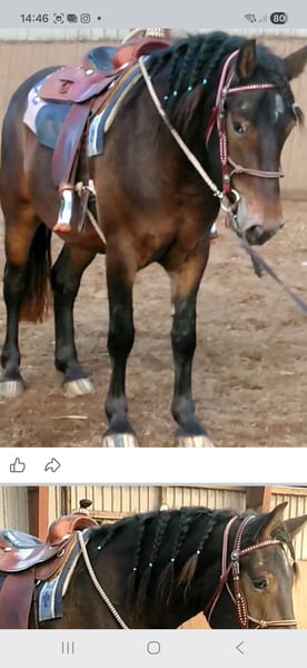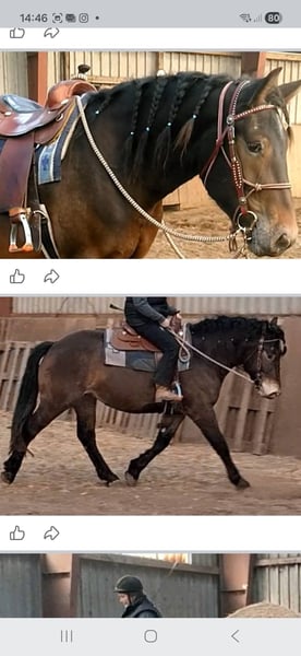 Western/Workin E .Curvy Model Stute / Muss leider die Köfferchen packen und sucht ein schönes Zuhause in dem man sie auch zuschätzen weiß Der aktuelle Standort ist in Brandenburg /Oberhavel Bitte bei ernsthaftem Interesse an unserem Curvy Model den Anzeigentext sorgfälg durchlesen in dem das Pferd so gut wie möglich beschrieben wird ich werde gerne Fragen zu ihr beantworten bei Anfrage und ernsthaftem K.aufnteresse aber das meiste steht hoffentlich schon im Text . Ja es gibt auch weitere Fotos und auch Videos von ihr die ich auch verschicke auf Anfrage aber bitte ebenfalls nur bei ernsthaftem interesse an ihr oder vereinbarung eines Besichtigungstermins für sie. Daher bitte keine Foto und Videosammler . Wir leiden nicht an chronischer Langeweile also bitte keine Time Waster. Daher bitte ich ebenfalls um Verständnis das ich bei Anfragen nicht immer gleich ans Handy springen kann .Ich melde mich aber zurück .Bitte auch keine Anfragen auf Raten ,Tausch oder Inzahlungnahme von was auch immer . Mittlerweile sollte jeder Pferdemensch wissen das eine Pferdeausbildung recht kostspielig ist und das der Preis bei zunehmendem Ausbildungsstand eher steigt . So nun zum Pferdchen. Unser Curvy Model ist ein wirklich propperes Mädchen 4j und hat ein Stockmaß von ca 156cm. Der Grund weswegen sie packen muss . Man kann leider nicht alle behalten . Sie ist ein Grundehrliches freundliches aufgeschlossenes Pferd. Beißt nicht tritt nicht spuckt nicht . Absolut keine Zicke auch nicht in der Rosse . Sie ist dem Alter entsprechend in allen drei Grundgangarten in Anlehnung an Western/ oder working Equitation geritten . Meist mit Westernsattel und Transe (die nicht mit dazu gegeben werden ) .Sie kennt aber auch english Equipment (wird auch nicht mit dazu gegeben ). Sie geht gut in Anlehnung und arbeitet willig mit . Sie ist in der Regel ruhigen Geistes aber nicht tot . Die Bremse funktiniert gut sie stoppt aus allen drei Grundgangarten(Kein sliding Stop manöver) Sie kennt beginnend Tempiunterschiede im Trab extended jog / jog /slow jog . läßt sich Rückwärtsrichten läuft über Stangen und auch über eine Träiningsbrücke. Sie kennt auch ausreiten mit Begleitpferd. Sie ist nicht absolut schreckfrei auf die Welt gekommen da sie ein junges Pferd ist ist aber keine Hysteriebirne wenn sie was grault dann zuckt sie auch mal zusammen brettert aber nicht hirnlos davon sondern läßt sich in der Regel gut überzeugen sich das Objekt des Horrors näher anzusehen . Sie kennt auch Hängerfahren ebenalls mit Begleitpferd. Sie ist eine Barhufige Offenstallbewohnerin die aber auch eine Box von innen kennt und eher rangniedrig ist . Kein Zankapfel . Das Motto ist ,es ist gesünder etwaiigen Streitigkeiten aus dem Weg zu gehen. Sie ist eher der Kuschelbär und möchte freundlich und fair behandelt werden Sie hat ein wirklich solides stabiles Fundament . Salopp gesagt sie ist eine Pummelfee für Pummelfeen und natürlich Elflein gleichwohl geignet und deckt auch größere Reiter gut ab. Es sind soweit keine Krankheiten bekannt aber es besteht nätürlich die Möglichkeit eine Ankaufsuntersung auf eigene kosten machen zu lassen. Sie wird ca 3-4 X die Woche gearbeitet in alters entsprechenden kurzzeit Einheiten um das Pferd nicht zu vergrämen . Daher ist sie keine Marathonritte gewohnt und steht auch nicht in der Kondition eines Marathonläufers . Sie wird somit gerne vorgeritten und ein kurzes probereiten ist auch möglich aber keinesfalls Stundenlang . Wir bitten dafür um Verständnis.