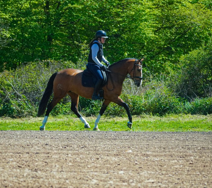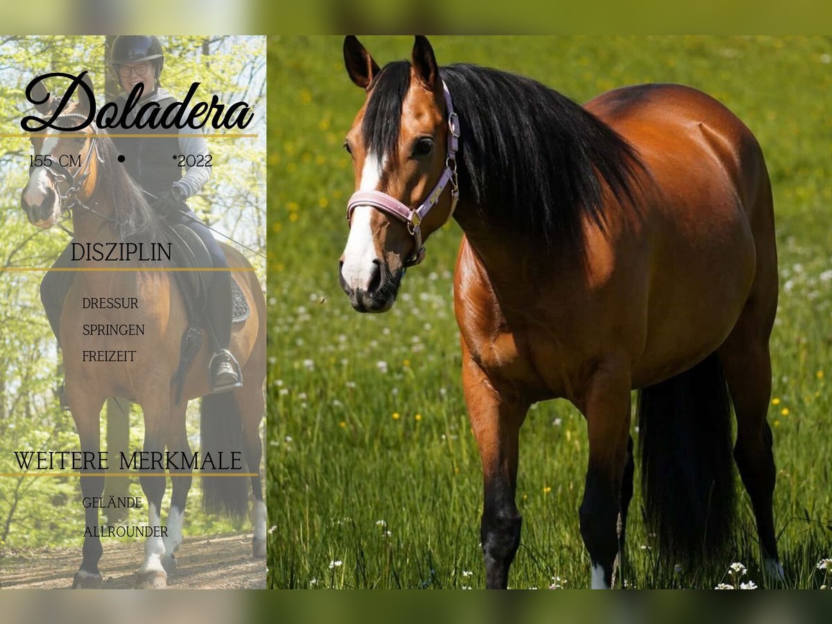 Doladera – Mare – approximately 15.8 hh (ca. 160 cm) *Doladera* is a stunning, highly versatile mare. She is incredibly calm and fearless. She moves beautifully in the arena and has three excellent gaits, all very rider-friendly. She has adapted very well to lunging on a halter. She is confident riding alone or in a group in the terrain, even in unfamiliar surroundings. Doladera crosses water, over tarps, and past vehicles and obstacles with absolute nerve and composure. She also makes a nice jump. A horse that opens all doors. Truly an all-rounder through and through. Not spooky, and she brings joy to her rider! BE SURE TO WATCH HER VIDEO! She has a stallion-like appearance and is simply stunning. In handling, she is people-oriented, affectionate, and gentle. Doladera is a dream horse in every respect. A current video can be found in the listing or at the following link: https://www.youtube.com/watch?v=UV01VwQVz7c Horse Trading Dederichs – Your Partner for Horse Buying Contact & Availability: Inquiries please exclusively by phone at 0173/9792139 Monday – Friday: 09:00 AM – 6:00 PM Saturday: 09:00 AM – 3:00 PM Sunday: Closed Follow us on social media! Experience our daily life with sale horses on Instagram, TikTok & Facebook under Pferdehandlung Dederichs Discount: Receive a 5% – 10% discount when taking your new dream horse immediately Trial Riding & Demonstration: • Trial ride: €40 per horse (up to 2 riders), fee credited upon purchase • Holidays: Trial ride €50 • Demonstration by our trainers: €30 per horse (pre-riding, groundwork, etc.) Pre-Purchase Examination & Transport: • Many of our horses already have a pre-purchase exam (AKU) • You are welcome to bring your own veterinarian • We can organize an examination for you • We are happy to assist with transport to your new home Other Sale Horses: We have additional horses available that are not yet listed online. If your dream horse is not yet among them, do not hesitate to contact us. Important Notes: • Height measurements are approximate and not precisely taken • All descriptions are subjective assessments by the seller and do not constitute guaranteed characteristics