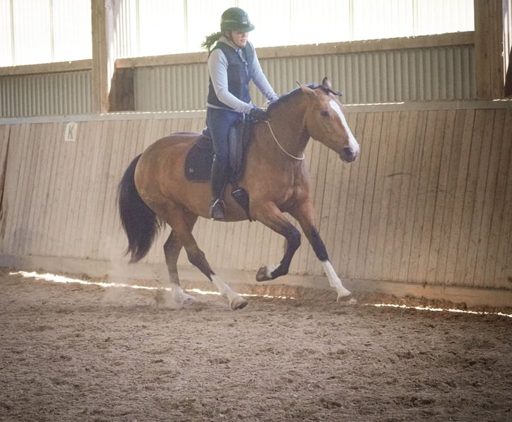 Doladera - yegua - aproximadamente 1,58-1,60 m *Doladera* es una yegua impresionante, muy versátil y con una belleza excepcional. Es una yegua muy tranquila y valiente. Se desplaza con gracia en la pista y presenta tres excelentes movimientos de galope, además de ser muy cómoda en la silla. Ha demostrado ser muy dócil en el trabajo con la cuerda de cuello. Se desplaza sola y en grupo en el campo, incluso en entornos desconocidos, con calma y confianza. Doladera atraviesa agua, pasa por lonas, vehículos y obstáculos diversos sin problema, mostrando una gran nerviosidad y serenidad. También realiza saltos con facilidad. Es una yegua que abre muchas puertas, una auténtica versátil. No es terca, ¡con ella se disfruta mucho! ¡NO DEJE DE VER SU VIDEO! Visualmente, tiene un tipo de semental, simplemente hermosa. En su trato, es muy sociable, cariñosa y dulce. Doladera es un caballo de ensueño en todos los aspectos. Un video actual se encuentra en el anuncio o en el siguiente enlace: https://www.youtube.com/watch?v=UV01VwQVz7c Hípica Dederichs – Su socio para la compra de caballos Contacto y disponibilidad: Consultas exclusivamente por teléfono al 0173/9792139 Lunes a viernes: 09:00 – 18:00 h Sábado: 09:00 – 15:00 h Domingo: día de descanso ¡Síganos en redes sociales! Viva nuestro día a día con los caballos en venta en Instagram, TikTok y Facebook en Hípica Dederichs Descuento: Al llevarse su nuevo caballo de ensueño de inmediato, recibe un 5 % a 10 % de descuento Prueba de monta y exhibiciones: • Prueba de monta: 40 € por caballo (máximo 2 jinetes), el importe se descontará en la compra • Festivos: prueba de monta 50 € • Exhibición por nuestros preparadores: 30 € por caballo (monta previa, trabajo en tierra, etc.) Examen de compra y transporte: • Muchos de nuestros caballos ya disponen de un informe de salud (AKU) • Por supuesto, puede traer su propio veterinario • Podemos organizar un examen veterinario • También le ayudamos con el transporte a su nuevo hogar Otros caballos en venta: En nuestro establo hay más caballos en venta que aún no están en línea. Si su caballo soñado aún no aparece, no dude en contactarnos. Información importante: • Las medidas de alzada son aproximadas y no están medidas con precisión • Todas las descripciones son evaluaciones subjetivas del vendedor y no garantizan características específicas