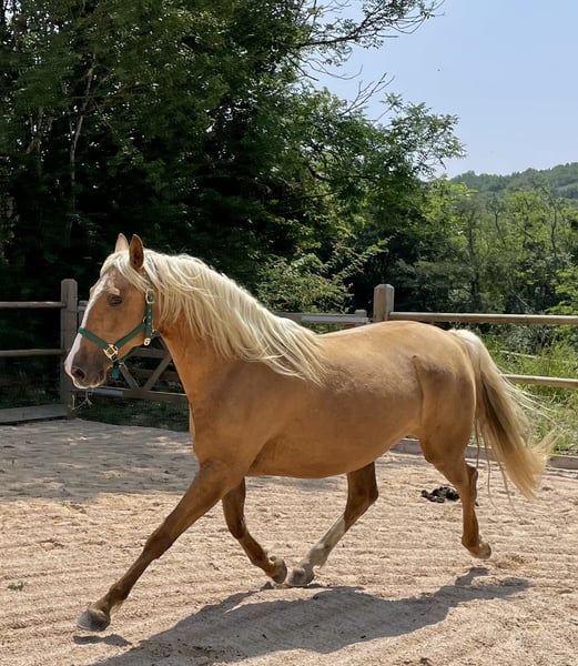 Un cadeau de la Vie qui se prénomme Loréa Dos Prados...💝 ❣️Ce qui la caractérise : la beauté, le charisme, la subtilité, l'intelligence, la pétillance, la facilité de lien avec les humains... ❣️Loréa est une jument exceptionnelle, en quête de son humain(e) de cœur qui saura voir en elle l'être merveilleux qu'elle est. La Belle aspire à un lien privilégié avec son humain(e), tout en conscience, pour une vie riche en expériences et en amour partagé. ❣️Loréa est née le 19 février 2021 et a des papiers OC. Elle est la fille de Romane (photo ci-dessous), hispano-barbe-arabe (de son vrai nom Romance) par Djebel Des Balmes (AB), et de Sénador Dos Prados (photo ci-dessous), étalon pp Crème d'origine Lusitanienne, champion de France des 2 et 3 ans en 2008 et 2009 et vice-champion des mâles en race Crème en 2010. ❣️Elle mesure 1m60 et a une sublime robe palomino cuivrée. Elle a un corps harmonieux et de belles allures amples et élastiques. ❣️Dotée d'une grande facilité d'apprentissage, toujours très curieuse et enthousiaste, elle sera une jument très polyvalente. Le débourrage sera d'ailleurs pour elle une formalité. ❣️Loréa aspire à une vie en troupeau en plus de son lien unique avec sa ou son humain(e). Elle vit en troupeau depuis toujours, éduquée par ses parents, et entourée par sa famille. ❣️Elle bénéficie d'une alimentation de très bonne qualité, ainsi que des soins réguliers en ostéopathie, en soins énergétiques et en communication animale. Elle est bien sûr vermifugée, parée et a déjà vu le dentiste. ❣️Si Loréa touche votre cœur, avec plaisir pour vous accueillir et venir la rencontrer sur son lieu de vie en Ariège. 🙏Plus de renseignements en MP ou au 0616824610