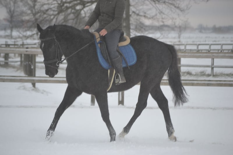 Very sweet 4-year-old mare standing 1.65 meters tall. She is easy to handle and enjoys being groomed. She is well-behaved under saddle and rides very calmly. She is social with other horses and traffic-safe. Mounting and dismounting are very easy with this lovely mare. For more information or videos, please contact me via WhatsApp or call at +31 645 719 488.