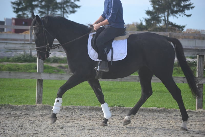 Bardzo uległa, prawie 4-letnia klacz o wzroście 1,65 m. Jest spokojna i cierpliwa w obsłudze, łatwo się na nią wsiada i odjeżdża, nie jest łatwo ją wystraszyć. Jest dobrze przyzwyczajona do ruchu drogowego i nie ma żadnych wad. Grzeczna u kowala i dentysty. Po więcej informacji lub wideo proszę samodzielnie napisać lub zadzwonić pod numer 0031645719488.