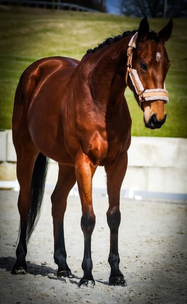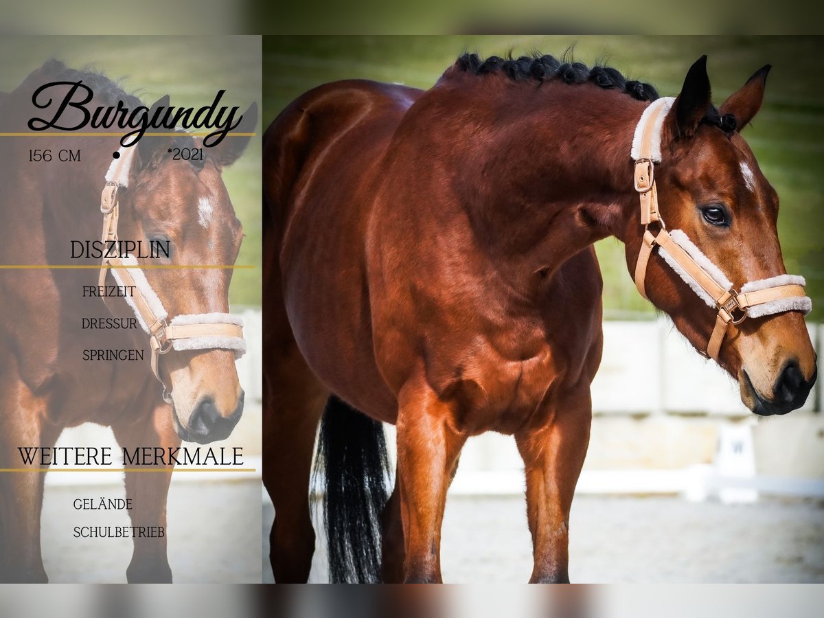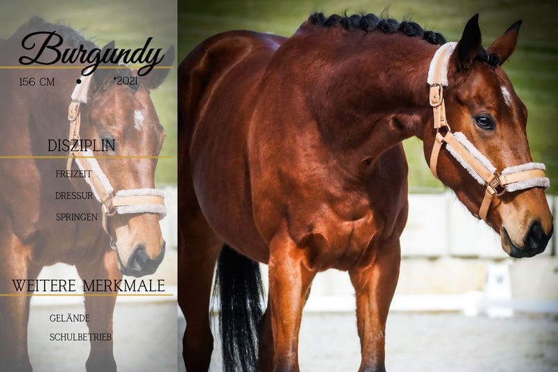 Burgundy is a 5-year-old mare, approximately 15.5 hands, sired by City Light out of Choisir. *Burgundy* is a very elegant and confident mare with an excellent temperament. She is well-schooled in the arena and suitable for trail riding, demonstrating talent over fences, making her an excellent all-rounder. She is very calm and unshakable, even around construction vehicles, noise, tarps, and road traffic. She also handles unfamiliar environments with ease. A dream horse! We can also see her working well in riding schools or with young riders. She is well-mannered and uncomplicated in handling. She already has a recent health check (AKU). Horse Dealership Dederichs – Your Partner for Horse Buying Contact & Availability: Please inquire exclusively by phone at 0173/9792139 Monday – Friday: 9:00 AM – 6:00 PM Saturday: 9:00 AM – 3:00 PM Sunday: Closed Follow us on social media! Experience our daily work with sale horses on Instagram, TikTok & Facebook under Pferdehandlung Dederichs. Discount: Receive 5% – 10% off when taking your new dream horse immediately. Trial Riding & Viewing: • Trial ride: €40 per horse (up to 2 riders), amount credited towards purchase • Public holidays: €50 for trial ride • Demonstration by our grooms: €30 per horse (including groundwork, lunging, etc.) Pre-Purchase Examination & Transport: • Many of our horses already have a recent health check (AKU) • You are welcome to bring your own veterinarian • We can arrange a pre-purchase exam • We also assist with transportation to your new home Other Sale Horses: We have additional horses available that are not yet listed online. If your dream horse is not among them, please don’t hesitate to contact us. Important Notes: • Estimated height measurements are approximate and not precisely measured • All descriptions are subjective assessments by the seller and do not constitute guaranteed properties