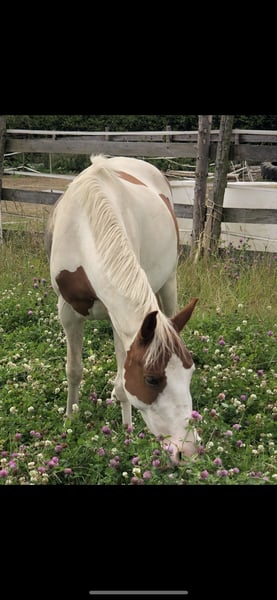Wij zoeken een 5* thuis voor onze prachtige, maar gevoelige ponyscheckstute. Ze is een laatbloeier. Flocke is tot nu toe aan de longe gewerkt, in de roundpen, kent grondwerk, trailhindernissen en vrijspringen, waarbij ze een goede sprong laat zien. We zoeken een liefdevol thuis waar ze verder gestimuleerd wordt, met veel plezier in haar dagelijkse werk. Ze wil graag gewerkt worden, dat merk je aan haar. Ze staat in een gemengde kudde en kent zowel box- als buitenstalling. Geen complete beginner, aangezien ze nog niet bereden is, zeer gevoelig is en enige tijd nodig heeft om aan een persoon te wennen. Ik zou haar inschatten als een een-persoonspaard, dat met veel tijd en geduld tot een geweldig team kan uitgroeien. Ik kan haar de benodigde tijd helaas niet bieden. Momenteel absoluut plek voor prijs. Anders gaat ze in training en wordt de prijs aangepast. Bij interesse graag contact opnemen, het liefst via WhatsApp.