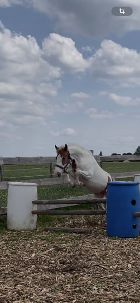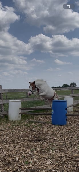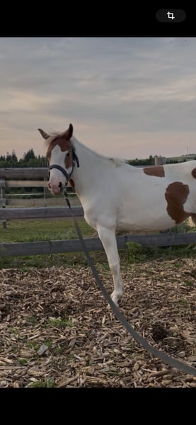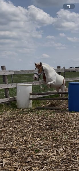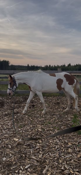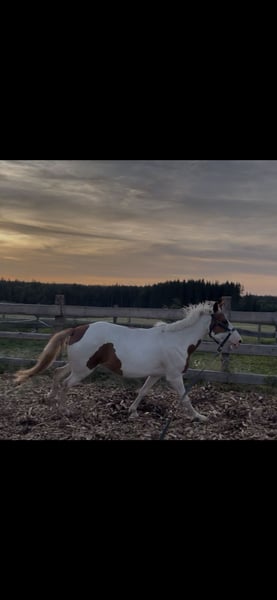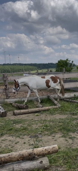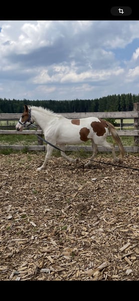 Wir suchen ein 5* Zuhause für unsre wunderschöne, aber sensible Ponyscheckstute. Sie ist ein Spätentwickler. Flocke wurde bisher an der Longe gearbeitet, im RoundPen, kennt Bodenarbeit, Trailhindernisse und Freispringen, wobei sie einen guten Sprung zeigt. Wir suchen ein liebevolles Zuhause, wo sie weiterhin gefördert wird, mit ganz viel Spaß bei ihrer täglichen Arbeit . Sie möchte gearbeitet werden, das merkt man ihr an. Sie steht in einer gemischten Herde und kennt Boxen und Offenstallhaltung. Bitte kein kompletter Anfänger, da sie noch nicht geritten ist, sehr feinfühlig ist und eine gewisse Zeit braucht um sich an eine Person zu gewöhnen. Ich würde sie als Ein-Person Pony einschätzen, welche mit viel Zeit, Geduld mit ihr zu einem tollen Team zusammenwächst. Sie hatte schon Trense, Sattel aufliegen mit leichtem Gewicht. Aktuell absolut Platz vor Preis, Herbstpreis 1900€ bei gutem Platz. Da sie sonst in Beritt geht und der Preis angepasst wird. Bei Interesse gerne melden, am besten über WhatsApp.