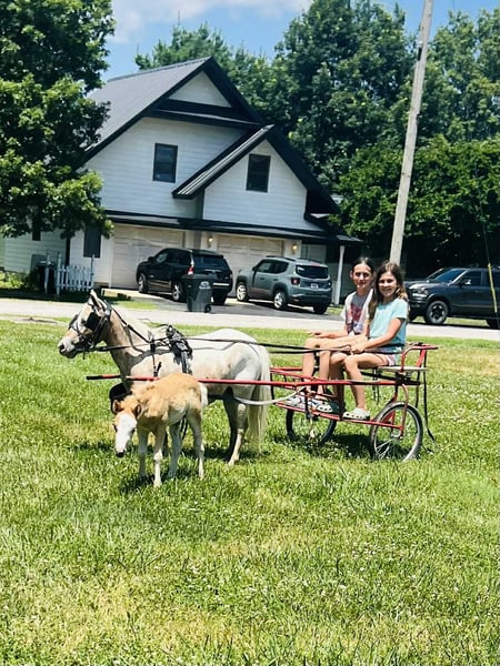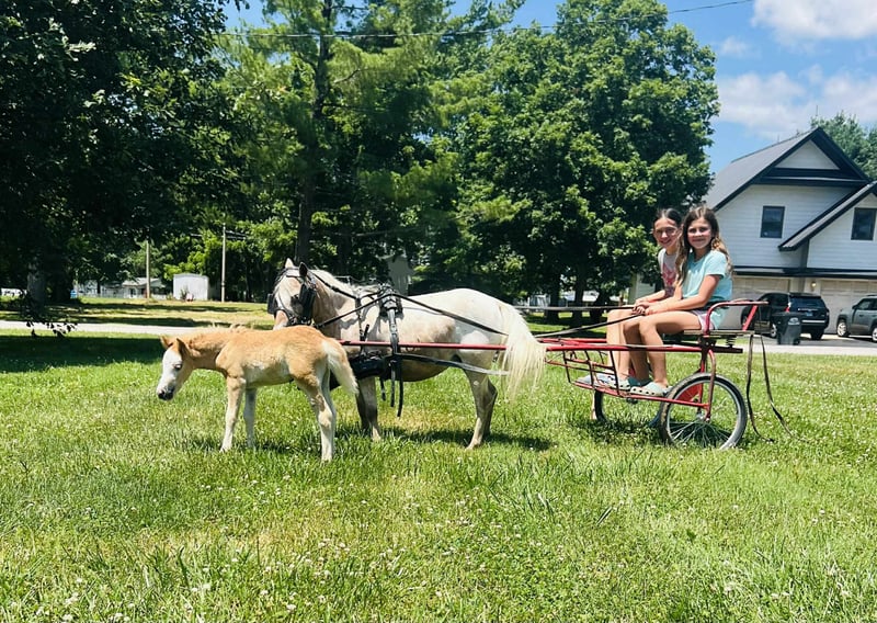 "AVAILABLE ON ONLINE HORSE AUCTION AT www DOT MagicHorseAuction DOT com BIDDING OPEN NOW thru TUESDAY | December 23RD! BUY IT NOW AVAILABLE! *Final price will be determined on auction site* CONSIGNOR CONTACT INFO: Mitch Titus 217-549-3803 LOCATION: Charleston, IL Strawberry is a 6 year old grade 36 inch pony mare! If you are looking to have the prettiest riding and driving pony around here she is! Our kids love to drive her around the farm and to grandma and grandpas house every chance they get! She also very broke to ride too. Strawberry has spent many days in the arena helping pushing the roping cattle up to the chute and just playing around pushing them in the arena too. She’s been on camping trips to the national parks for trail rides. She stands tied good on the picket lines or tied to the trailer. Strawberry is traffic safe and has been around all the farm animals! She’s also safe for the little ones to brush and pet on all day. Our daughter treats her like a big pet dog! We have used her also as a lead line pony to lead the little the kids around. She’s currently being rode by our 4 year old son and 3 year old daughter they both get along with her great! She will ride bareback and with a halter just as good as she does with the bridle and saddle. She gets along with everyone in the pasture too. Our kids have done everything her! Strawberry is a pony that you can enjoy for a long time! She is located in brownstown Illinois call or text Mitch Titus at 1217-549-3803.