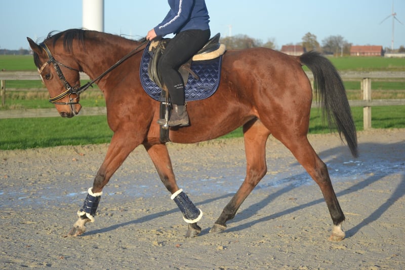 Liebe 7-jährige Stute, 1,65 m groß. Sie ist unkompliziert und ruhig im Umgang und genießt die Aufmerksamkeit. Sie ist angenehm zu reiten, reagiert gut auf deine Hilfen und lässt sich nicht leicht aus der Ruhe bringen. Sie ist sozial im Umgang mit anderen Pferden. Für weitere Informationen bitte direkt per WhatsApp oder Telefon unter 0031645719488 Kontakt aufnehmen.