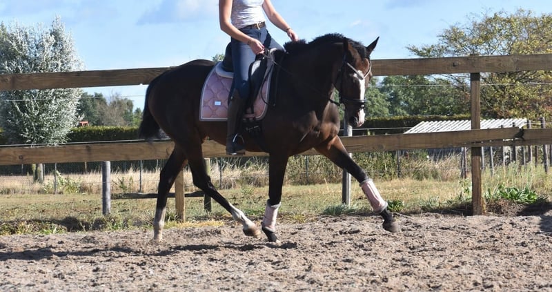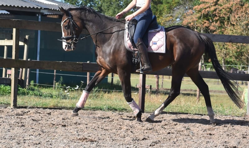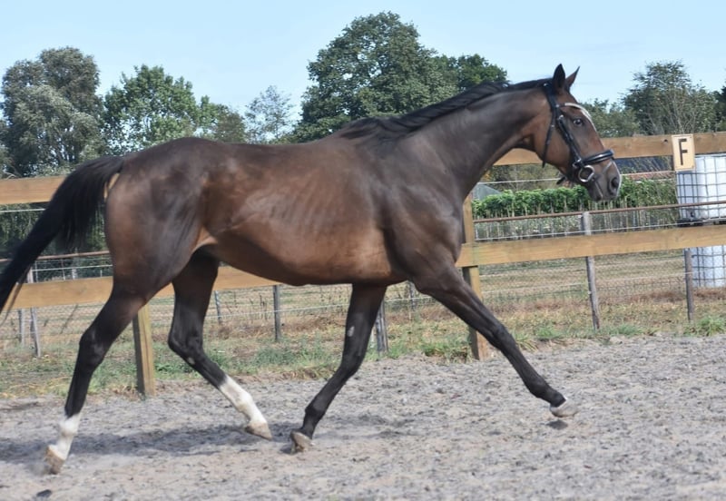 Paddy is a 9-year-old mare standing approximately 1.62 meters tall, with a pedigree that includes Leading Light x Caoba by Hernando (FR). She has an elegant yet solid build, with beautiful long legs, and is very pleasant to ride. Paddy is far from lazy and enjoys working for her rider. She has a soft mouth and responds well to aids; a heavy hand is absolutely unnecessary with her. She is traffic-safe, healthy, and free of any blemishes. She is also very interesting for breeding purposes! Recently treated by the veterinarian and in possession of a recent health report. Price: €5,950, including brand saddle and saddle pad.