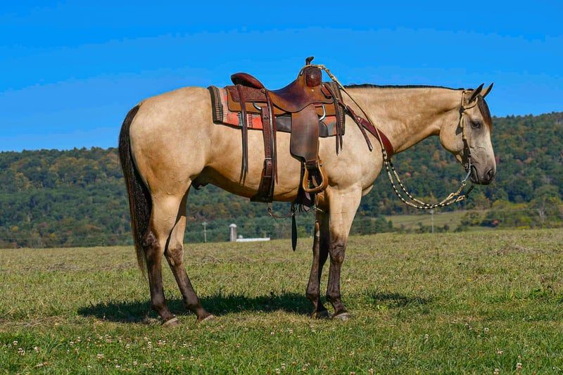 🍂 𝓐𝓾𝓽𝓾𝓶𝓷 𝑨𝑳𝑳 𝑺𝑻𝑨𝑹 𝑳𝑰𝑵𝑬𝑼𝑷 🍂 Happening now thru MONDAY | OCTOBER 6th - Available EXCLUSIVELY on HorseBid's website! For more details and to register visit: www.Horsebid.com CONSIGNOR CONTACT: Marlis Farms 814-777-0607 LOCATION: Rebersburg, Pa BREED: APHA REGISTERED: Yes REGISTERED NAME: Trashtotreasurecash COLOR: Buckskin HEIGHT: 15 AGE: 6 GENDER: Gelding “TRASHTOTREASURECASH” aka “Treasure” is a 6 year old, 15hh registered APHA gelding that truly lives up to his name as being a “treasure”. Pictures do not do this guy justice, he is BREATH TAKING in person! Treasure is “Mr. Personality” and the type of horse that would rather follow you in the house than be with the herd! He is the biggest love bug and will always leave a smile on your face! Not only is Treasure beautiful with a personality to match, but he is also extremely intelligent and very well educated under saddle! He is the most charming, kind, honest, fun, reliable and safe partner to have! In the arena, Treasure is very well balanced, his gaits are comfortable and his transitions are smooth. Treasure moves off seat and leg, but also listens to voices cues too! He rides English, western and bareback. As fancy as Treasure is, of course he comes with some buttons! He drops his head and will lope around collectively on a loose rein, he has a big stop and knows the word “woah”, he will back up, turn on his haunches, side pass and do a little spin! He is a BLAST to ride! Treasure is ready to hit the show ring and would really excel in the ranch riding classes, trail challenges or would be a beautiful western dressage horse! On the trails, Treasure is brave, willing, confident and super laid back! Not much rattles this guy! He crosses over logs, bridges, creeks and will ride up and down steep terrain! He is traffic safe and unbothered by scary objects like bikes, tractors, heavy equipment, SXSs, ATVs, horse drawn carriages, etc! He is not buddy or barn sour and can ride out alone or with a group and is happy anywhere in the pack! At home, Treasure is a really easy keeper on a simple forage based diet. He requires no maintenance or supplements, and can live inside or outside. He never complains as long as he’s getting love and attention! Treasure is polite with wonderful ground manners and is very well mannered for the vet, farrier and dentist! He loads and travels great and always stands tied quietly and patiently at new places! Treasure is good for all the normal barn tasks including bathing, clipping, grooming and tacking up. I never have to worry about who handles this gelding in the barn as I trust he is going to be good for kids and beginners! He has that “old soul” vibe to him and really loves being around people and children. Everyone who meets Treasure falls in love, he is truly one of a kind! Remember, wherever your heart is, there you will find your treasure!